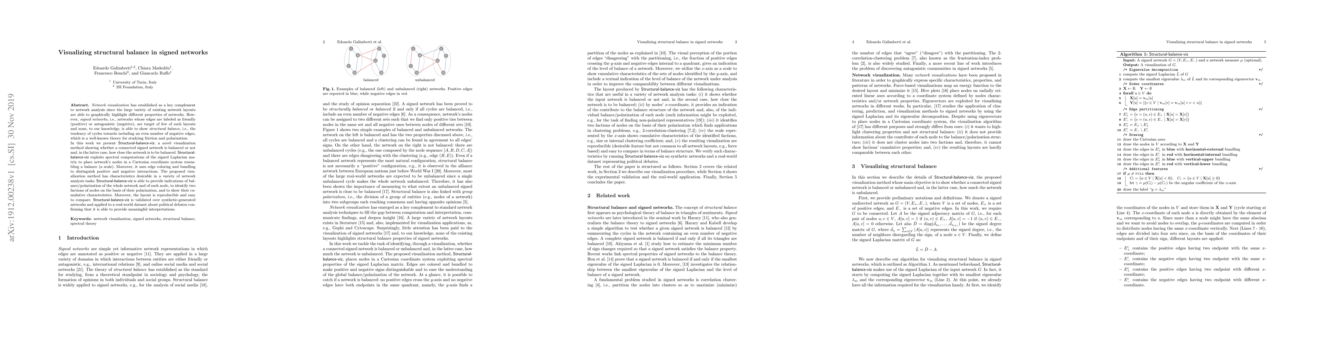 The algorithm places nodes in a Cartesian coordinates system based on their signed degree and exploits edge coloring and bundling for visualizing balance/polarization.