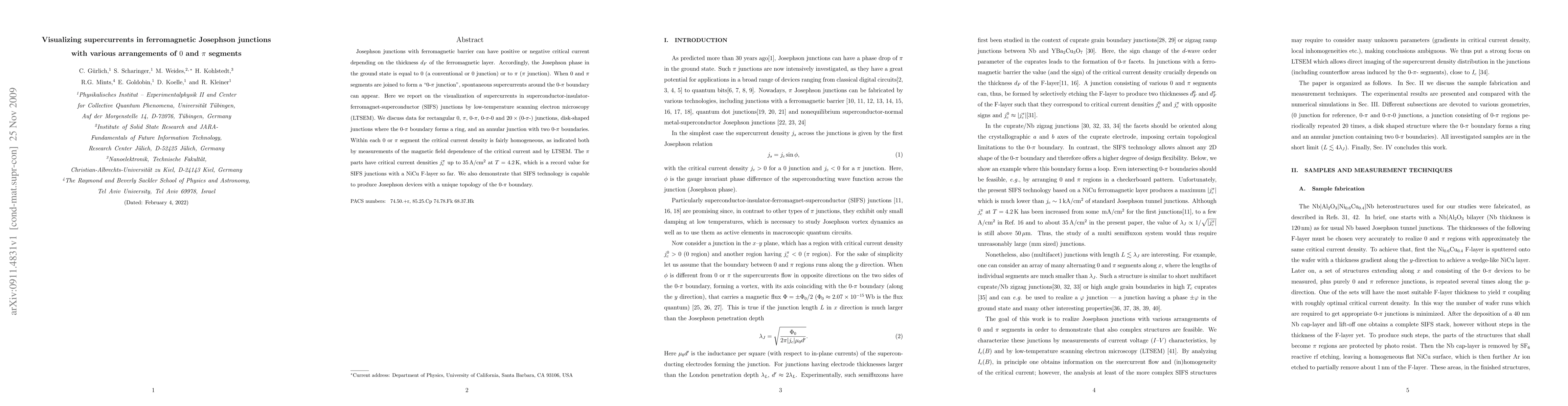 This study visualizes supercurrents in ferromagnetic Josephson junctions via low-temperature scanning electron microscopy, reporting on the magnetic field dependence of critical current and the topological effects of 0 and π segments, achieving record critical current densities up to 35 A/cm² for π segments. The research highlights the potential of SIFS technology in creating complex Josephson devices.