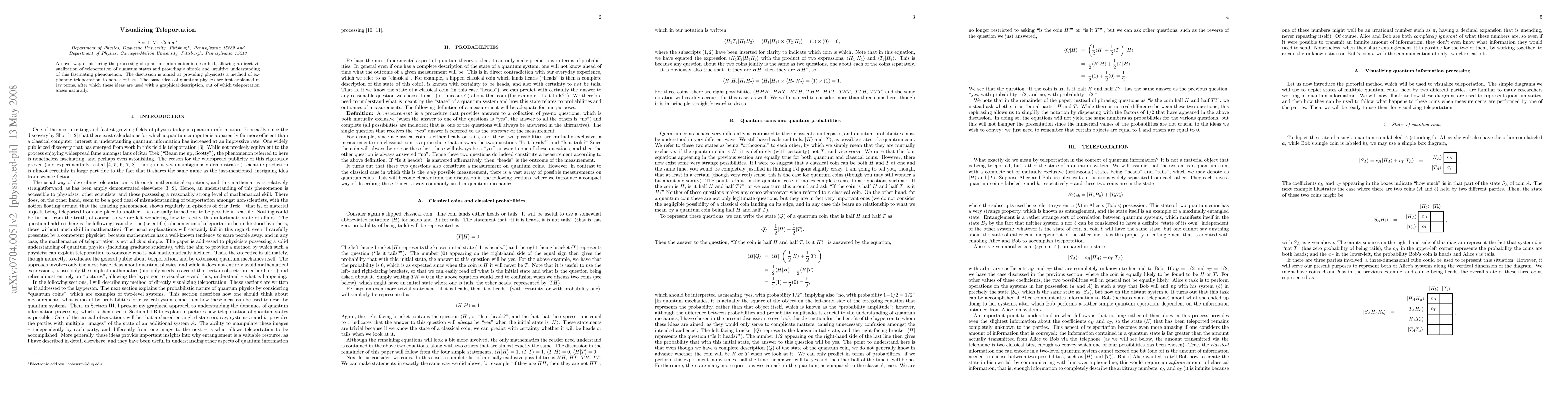 A novel way of picturing the processing of quantum information is described, allowing a direct visualization of teleportation of quantum states and providing a simple and intuitive understanding of this fascinating phenomenon. The discussion is aimed at providing physicists a method of explaining teleportation to non-scientists. The basic ideas of quantum physics are first explained in lay terms, after which these ideas are used with a graphical description, out of which teleportation arises naturally.