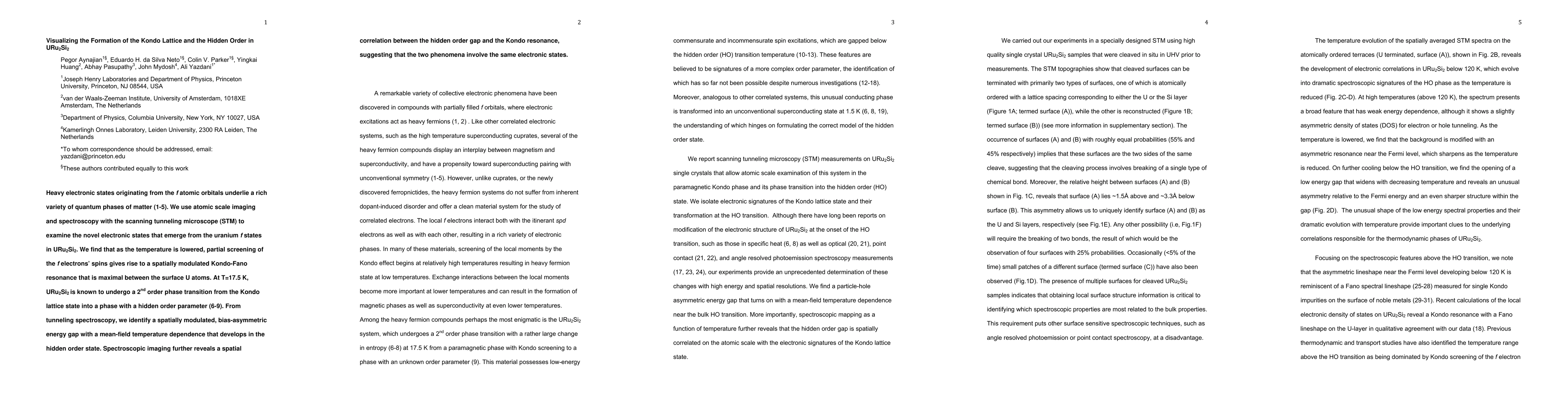 This paper uses atomic scale imaging and spectroscopy to investigate the electronic states in URu2Si2, revealing a spatially modulated Kondo-Fano resonance and a hidden order phase transition at 17.5 K, characterized by a bias-asymmetric energy gap correlating with the Kondo resonance.
