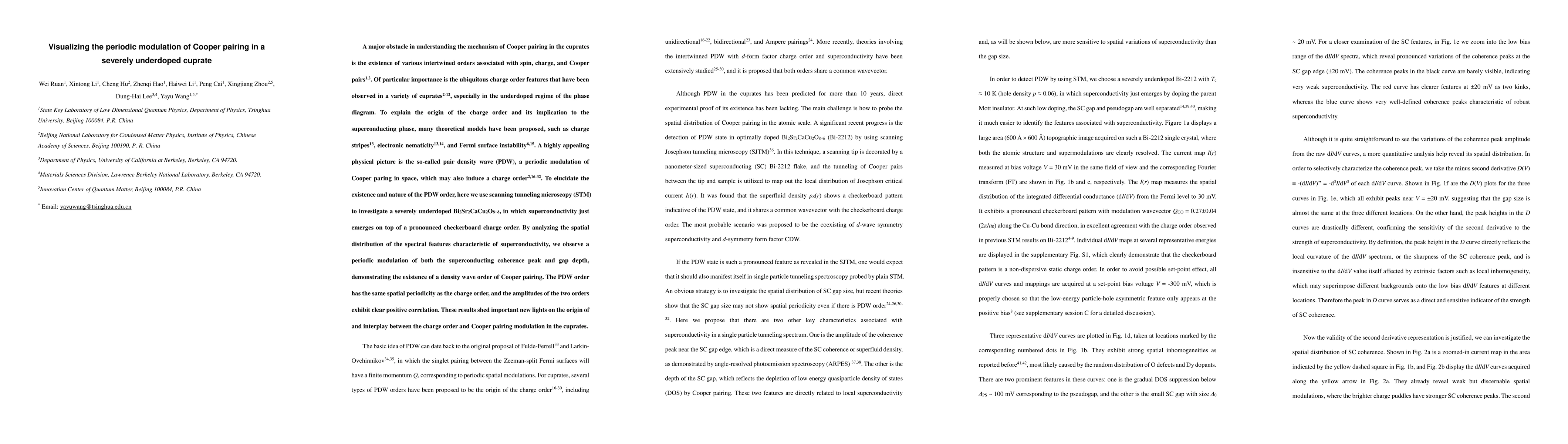 A major obstacle in understanding the mechanism of Cooper pairing in the cuprates is the existence of various intertwined orders associated with spin, charge, and Cooper pairs. Of particular importance is the ubiquitous charge order features that have been observed in a variety of cuprates, especially in the underdoped regime of the phase diagram. To explain the origin of the charge order and its implication to the superconducting phase, many theoretical models have been proposed, such as charge stripes, electronic nematicity, and Fermi surface instability. A highly appealing physical picture is the so-called pair density wave (PDW), a periodic modulation of Cooper paring in space, which may also induce a charge order. To elucidate the existence and nature of the PDW order, here we use scanning tunneling microscopy (STM) to investigate a severely underdoped Bi2Sr2CaCu2O8+{\delta}, in which superconductivity just emerges on top of a pronounced checkerboard charge order. By analyzing the spatial distribution of the spectral features characteristic of superconductivity, we observe a periodic modulation of both the superconducting coherence peak and gap depth, demonstrating the existence of a density wave order of Cooper pairing. The PDW order has the same spatial periodicity as the charge order, and the amplitudes of the two orders exhibit clear positive correlation. These results shed important new lights on the origin of and interplay between the charge order and Cooper pairing modulation in the cuprates.