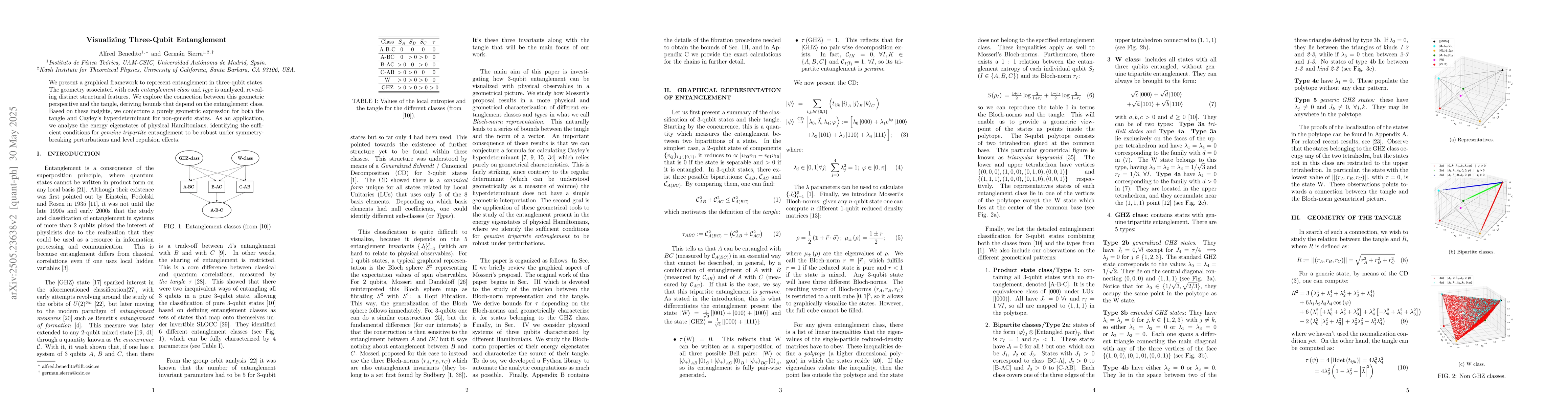 The paper introduces a novel graphical framework for visualizing three-qubit entanglement, linking geometric properties to entanglement measures like the tangle and Cayley's hyperdeterminant.