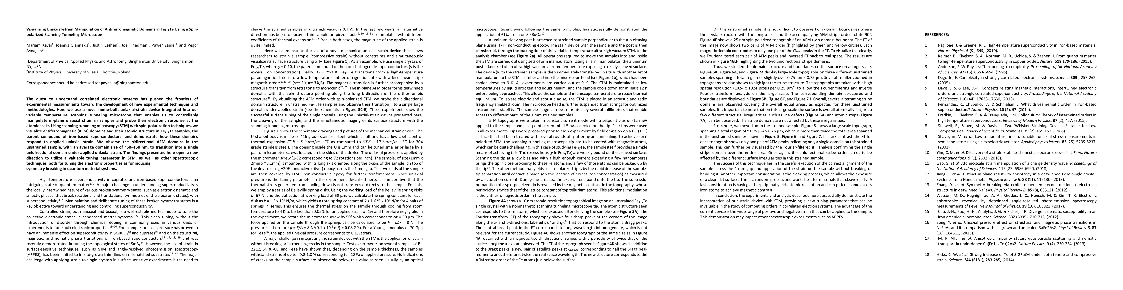 This study employs a spin-polarized scanning tunneling microscope to visualize how uniaxial strain manipulates antiferromagnetic domains in Fe1+yTe, revealing a transition from bidirectional to unidirectional domains under strain. The findings suggest a new method for tuning electronic properties in quantum materials.