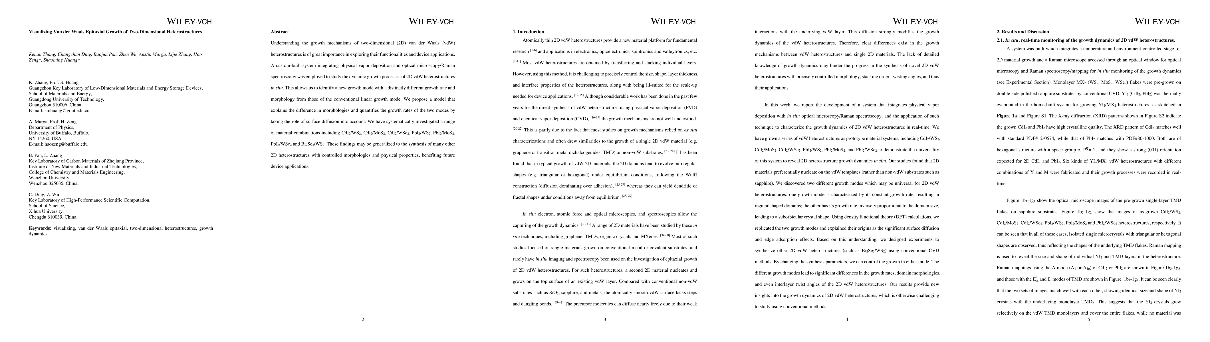 This paper investigates the in-situ growth mechanisms of van der Waals heterostructures using a custom-built system combining physical vapor deposition with optical microscopy and Raman spectroscopy. It identifies a novel growth mode differing from conventional linear growth, proposing a model to explain the observed morphological differences and quantifying growth rates by considering surface diffusion.
