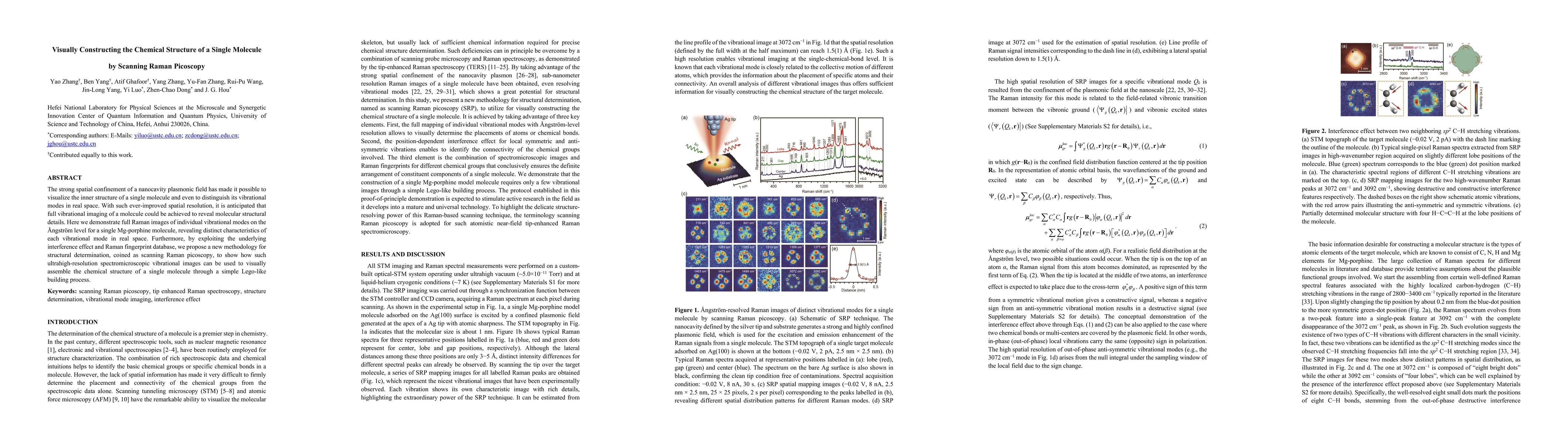 This paper demonstrates the use of scanning Raman picoscopy to visualize the chemical structure of a single Mg-porphine molecule at the Ångström level, revealing detailed vibrational modes. The methodology employs high-resolution spectromicroscopy and a Lego-like assembly process to construct the molecule's structure from its vibrational fingerprints.