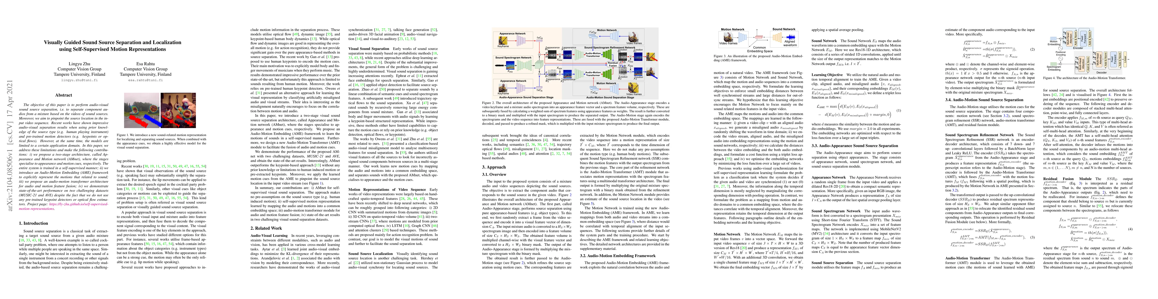 This paper proposes a self-supervised method for audio-visual sound source separation and localization using a two-stage AMnet architecture and an Audio-Motion Embedding framework, achieving state-of-the-art results without relying on pre-trained motion detectors.