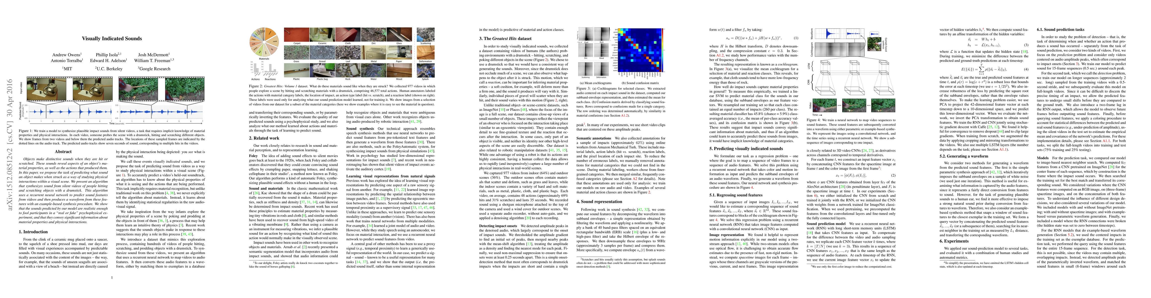 This paper proposes a method to predict and synthesize sounds from silent videos of objects being struck or scratched, using a recurrent neural network and example-based synthesis. The synthesized sounds are shown to be realistic and informative about material properties and interactions, as demonstrated by a successful psychophysical experiment.