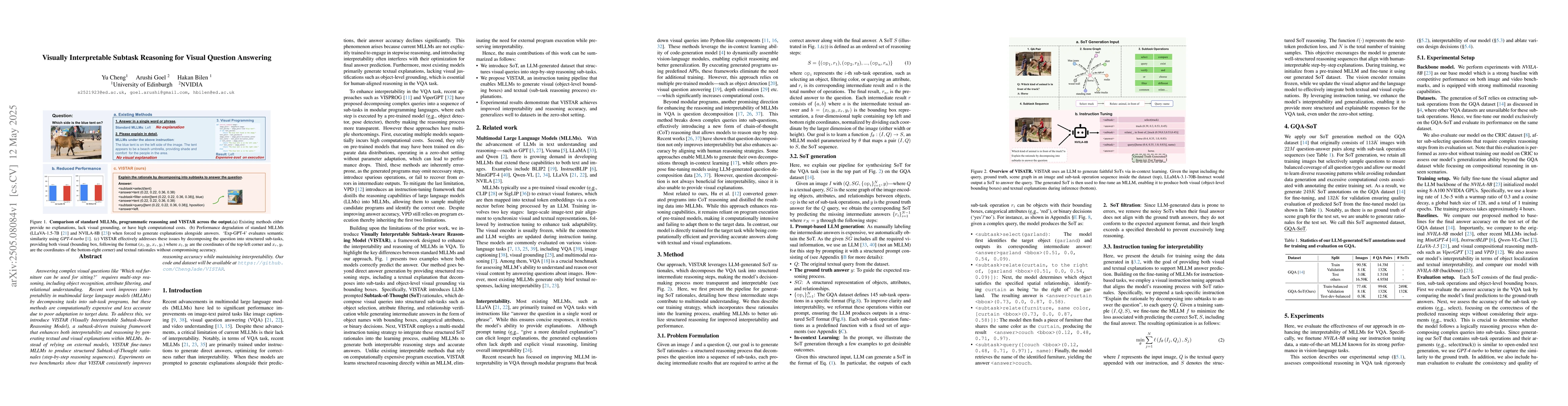 The research introduces VISTAR, a subtask-driven training framework that fine-tunes multimodal large language models (MLLMs) to produce structured Subtask-of-Thought rationales, enhancing both interpretability and reasoning by generating textual and visual explanations within the models.