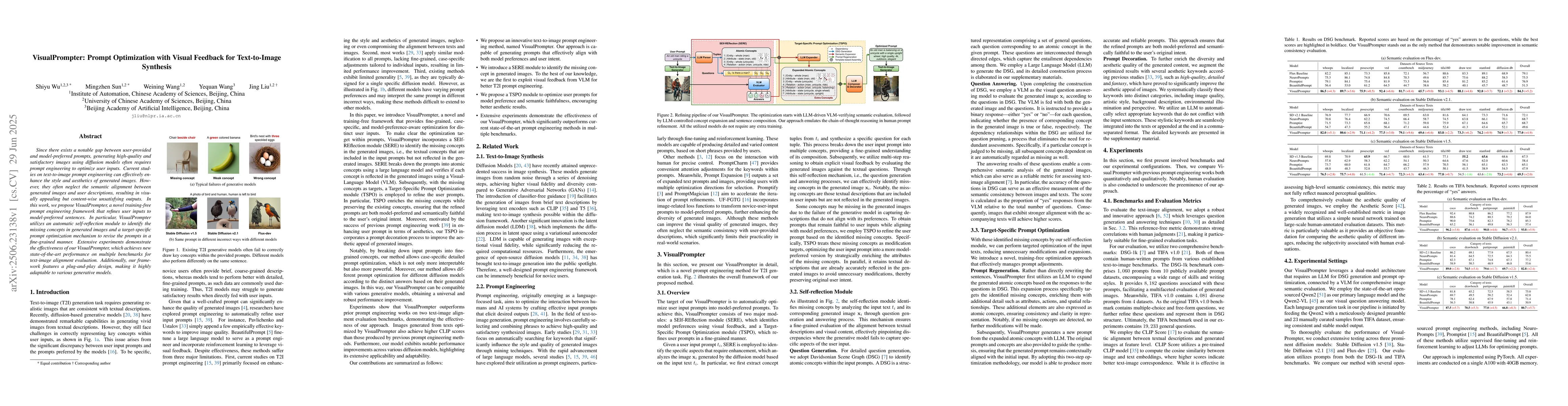 Since there exists a notable gap between user-provided and model-preferred prompts, generating high-quality and satisfactory images using diffusion models often requires prompt engineering to optimize user inputs. Current studies on text-to-image prompt engineering can effectively enhance the style and aesthetics of generated images. However, they often neglect the semantic alignment between generated images and user descriptions, resulting in visually appealing but content-wise unsatisfying outputs. In this work, we propose VisualPrompter, a novel training-free prompt engineering framework that refines user inputs to model-preferred sentences. In particular, VisualPrompter utilizes an automatic self-reflection module to identify the missing concepts in generated images and a target-specific prompt optimization mechanism to revise the prompts in a fine-grained manner. Extensive experiments demonstrate the effectiveness of our VisualPrompter, which achieves new state-of-the-art performance on multiple benchmarks for text-image alignment evaluation. Additionally, our framework features a plug-and-play design, making it highly adaptable to various generative models.