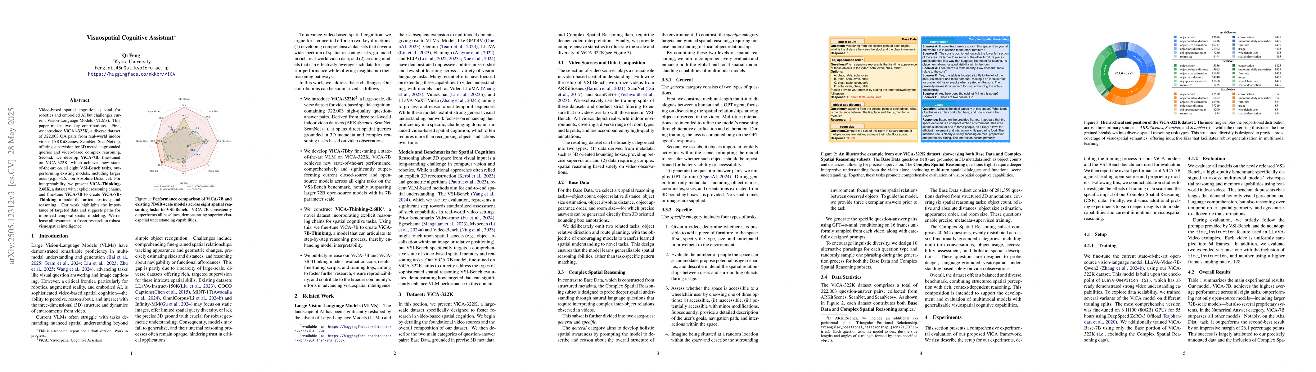 ViCA-322K dataset and ViCA-7B model, which excels in visuospatial cognitive tasks.