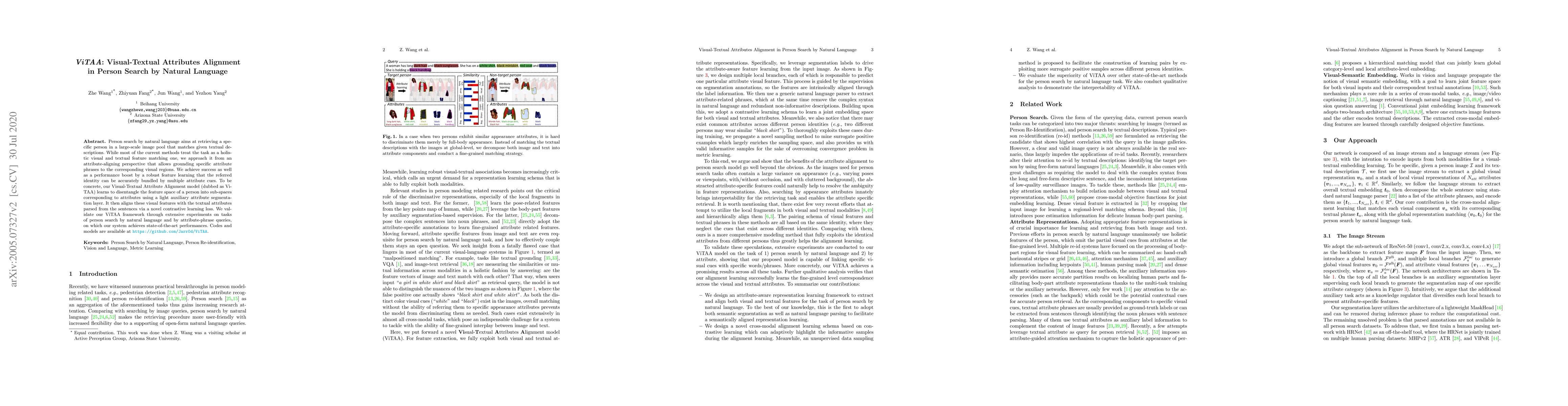 The ViTAA model aligns visual and textual attributes to enhance person search by natural language, achieving state-of-the-art performance through a feature learning approach that disentangles person features into subspaces corresponding to specific attributes. The method uses contrastive learning to match textual attributes with visual cues, validated on person search tasks.
