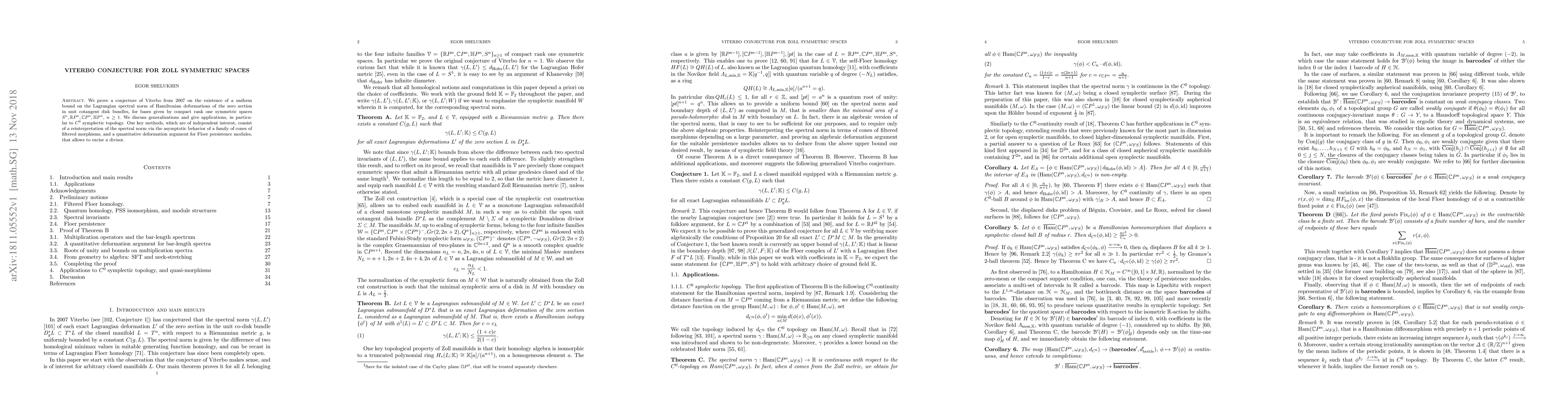 We prove a conjecture of Viterbo from 2007 on the existence of a uniform bound on the Lagrangian spectral norm of Hamiltonian deformations of the zero section in unit cotangent disk bundles, for bases given by compact rank one symmetric spaces $S^n, \mathbb{R} P^n, \mathbb{C} P^n, \mathbb{H} P^n,$ $n\geq 1.$ We discuss generalizations and give applications, in particular to $C^0$ symplectic topology. Our key methods, which are of independent interest, consist of a reinterpretation of the spectral norm via the asymptotic behavior of a family of cones of filtered morphisms, and a quantitative deformation argument for Floer persistence modules, that allows to excise a divisor.