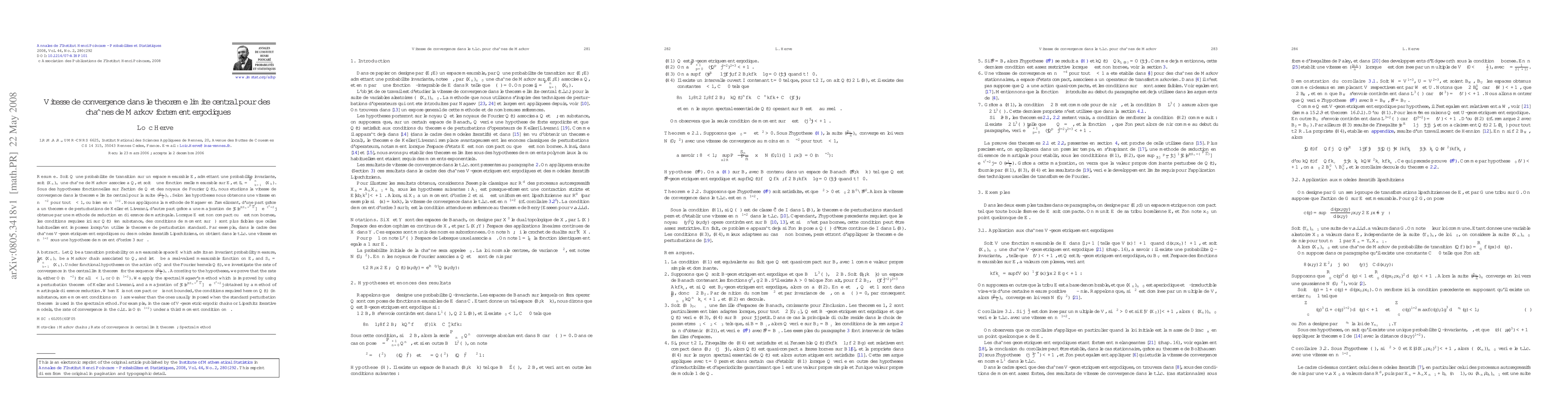 Let $Q$ be a transition probability on a measurable space $E$ which admits an invariant probability measure, let $(X_n)_n$ be a Markov chain associated to $Q$, and let $\xi$ be a real-valued measurable function on $E$, and $S_n=\sum _{k=1}^n\xi(X_k)$. Under functional hypotheses on the action of $Q$ and the Fourier kernels $Q(t)$, we investigate the rate of convergence in the central limit theorem for the sequence $(\frac{S_n}{\sqrt{n}})_n$. According to the hypotheses, we prove that the rate is, either $\mathrm{O}(n^{-{\tau}/{2}})$ for all $\tau<1$, or $\mathrm{O}(n^{-{1}/{2}})$. We apply the spectral Nagaev's method which is improved by using a perturbation theorem of Keller and Liverani, and a majoration of $|\mathbb{E}[\mathrm{e}^{\mat hrm{i}t{S_n}/{\sqrt{n}}}]-\mathrm{e}^{{-t^2}/{2}}|$ obtained by a method of martingale difference reduction. When $E$ is not compact or $\xi$ is not bounded, the conditions required here on $Q(t)$ (in substance, some moment conditions on $\xi$) are weaker than the ones usually imposed when the standard perturbation theorem is used in the spectral method. For example, in the case of $V$-geometric ergodic chains or Lipschitz iterative models, the rate of convergence in the c.l.t. is $\mathrm{O}(n^{-{1}/{2}})$ under a third moment condition on $\xi$.