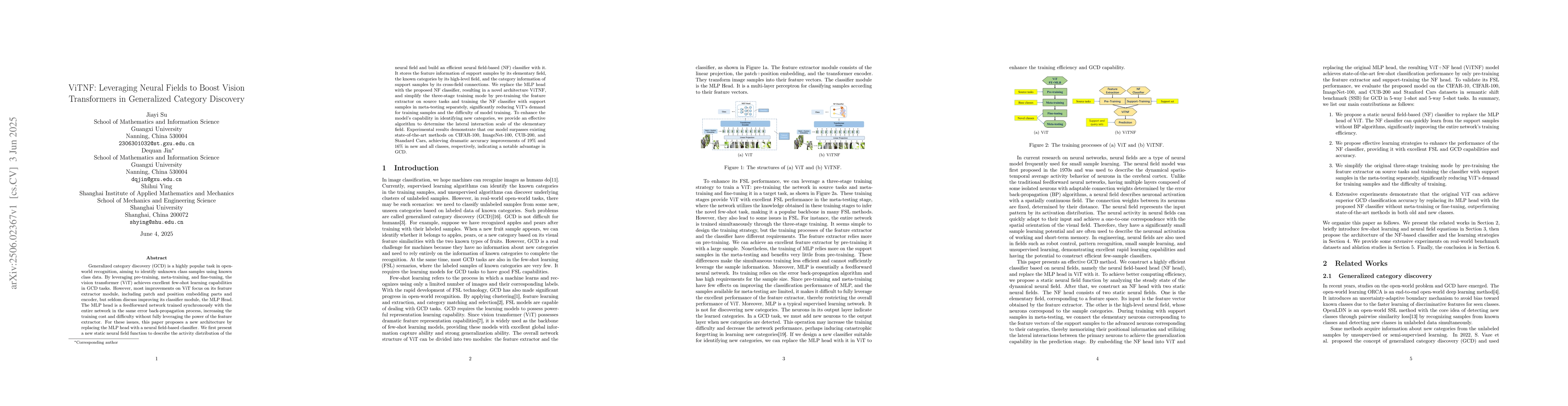 This research is significant as it enhances Vision Transformers' few-shot learning capabilities for open-world recognition tasks, specifically in generalized category discovery. By reducing training sample requirements and easing model training, ViTNF can be more practically applied in real-world scenarios.