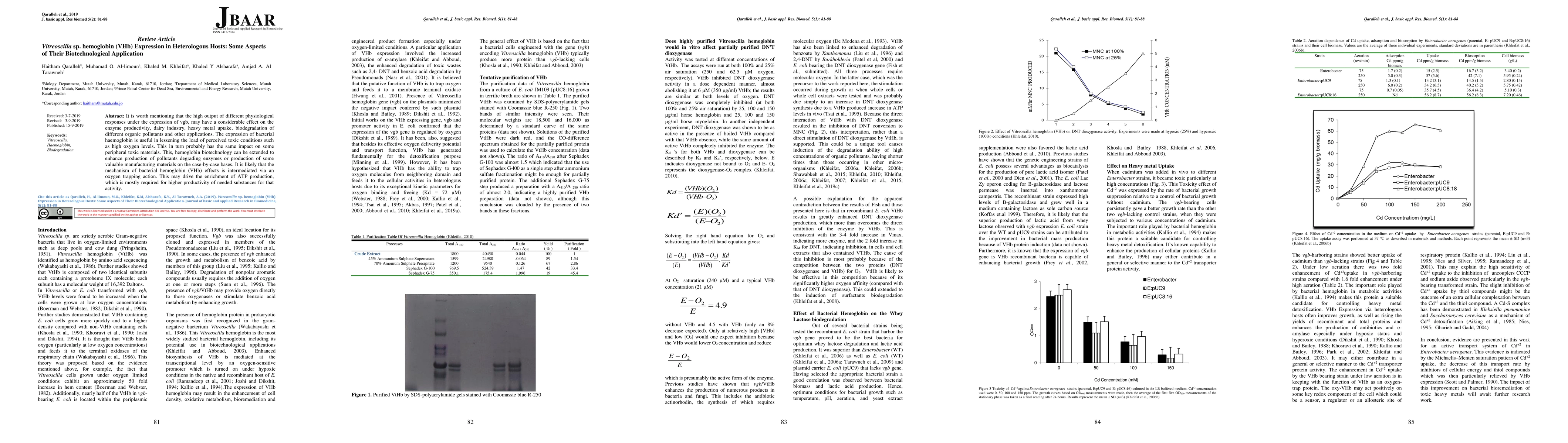It is worth mentioning that the high output of different physiological responses under the expression of vgb, may have a considerable effect on the enzyme productivity, dairy industry, heavy metal uptake, biodegradation of different organic pollutants and other applications. The expression of bacterial haemoglobin is useful in lessening the load of perceived toxic conditions such as high oxygen levels. This in turn probably has the same impact on some peripheral toxic materials. This, hemoglobin biotechnology can be extended to enhance production of pollutants degrading enzymes or production of some valuable manufacturing materials on the case by case bases. It is likely that the mechanism of bacterial hemoglobin (VHb) effects is intermediated via an oxygen trapping action. This may drive the enrichment of ATP production, which is mostly required for higher productivity of needed substances for that activity.