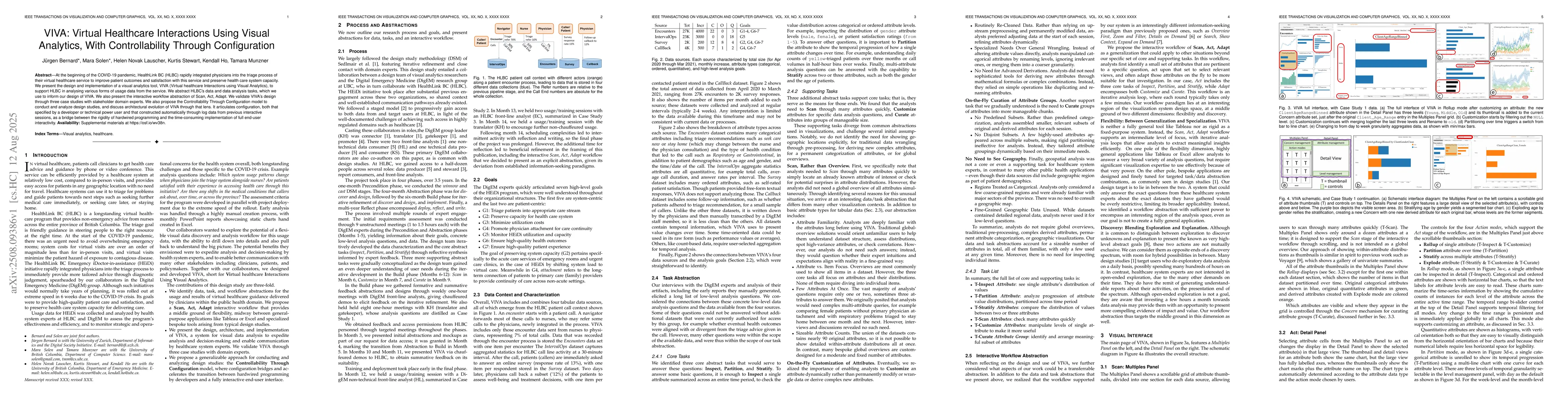 At the beginning of the COVID-19 pandemic, HealthLink BC (HLBC) rapidly integrated physicians into the triage process of their virtual healthcare service to improve patient outcomes and satisfaction with this service and preserve health care system capacity. We present the design and implementation of a visual analytics tool, VIVA (Virtual healthcare Interactions using Visual Analytics), to support HLBC in analysing various forms of usage data from the service. We abstract HLBC's data and data analysis tasks, which we use to inform our design of VIVA. We also present the interactive workflow abstraction of Scan, Act, Adapt. We validate VIVA's design through three case studies with stakeholder domain experts. We also propose the Controllability Through Configuration model to conduct and analyze design studies, and discuss architectural evolution of VIVA through that lens. It articulates configuration, both that specified by a developer or technical power user and that constructed automatically through log data from previous interactive sessions, as a bridge between the rigidity of hardwired programming and the time-consuming implementation of full end-user interactivity. Availability: Supplemental materials at https://osf.io/wv38n
