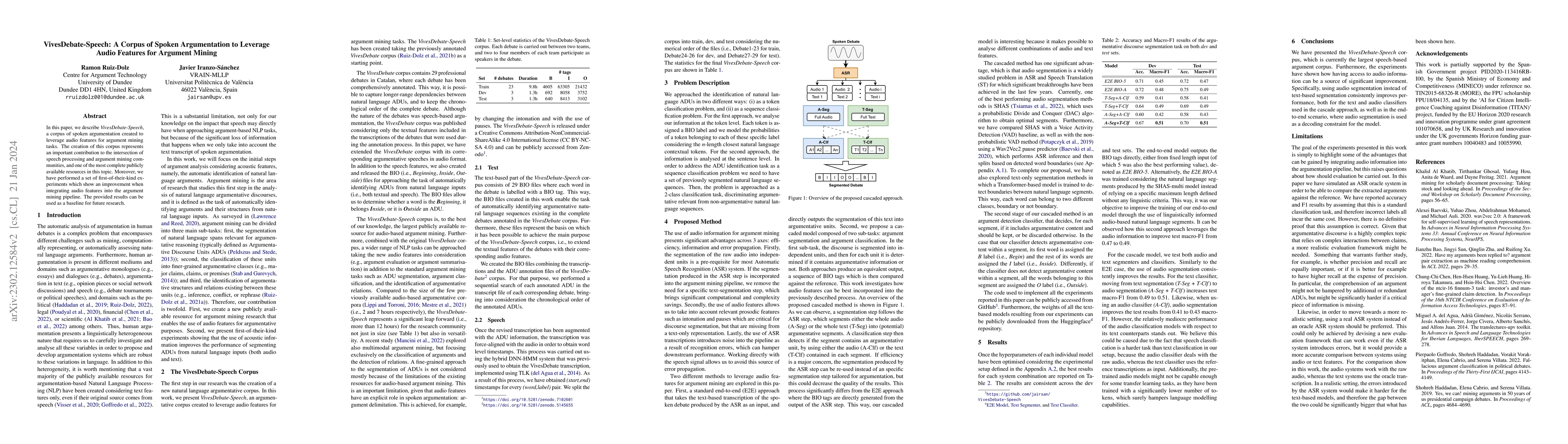 The VivesDebate-Speech corpus is a new resource for spoken argumentation that incorporates audio features to enhance argument mining. Initial experiments demonstrate improved outcomes when utilizing these audio features, offering a valuable baseline for future studies in this field.