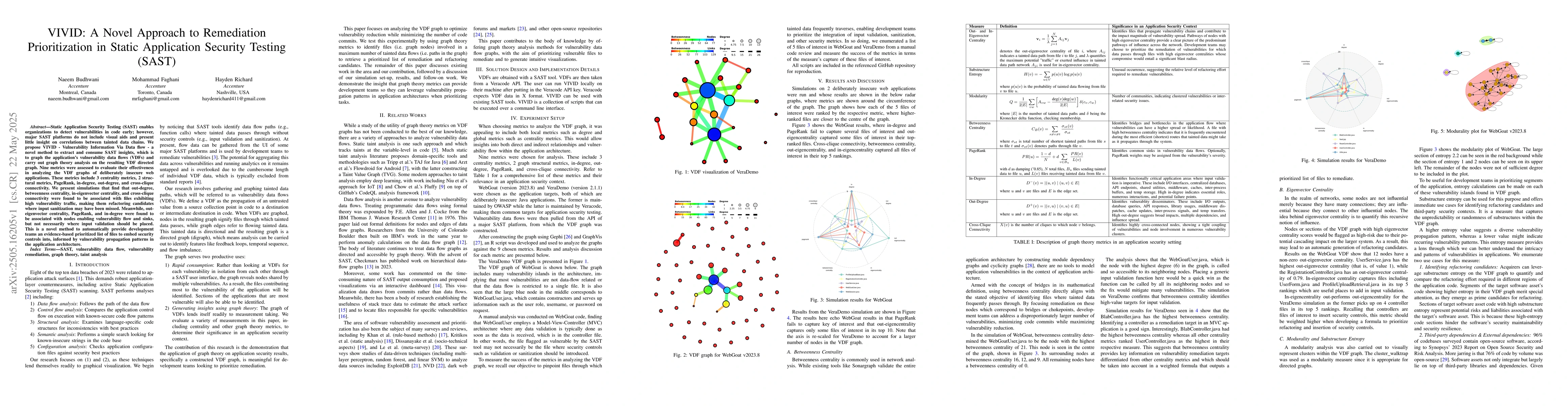 A new method called VIVID is proposed to prioritize remediation in static application security testing by analyzing vulnerability data flows through graph theory analysis, providing a prioritized list of files for security controls.