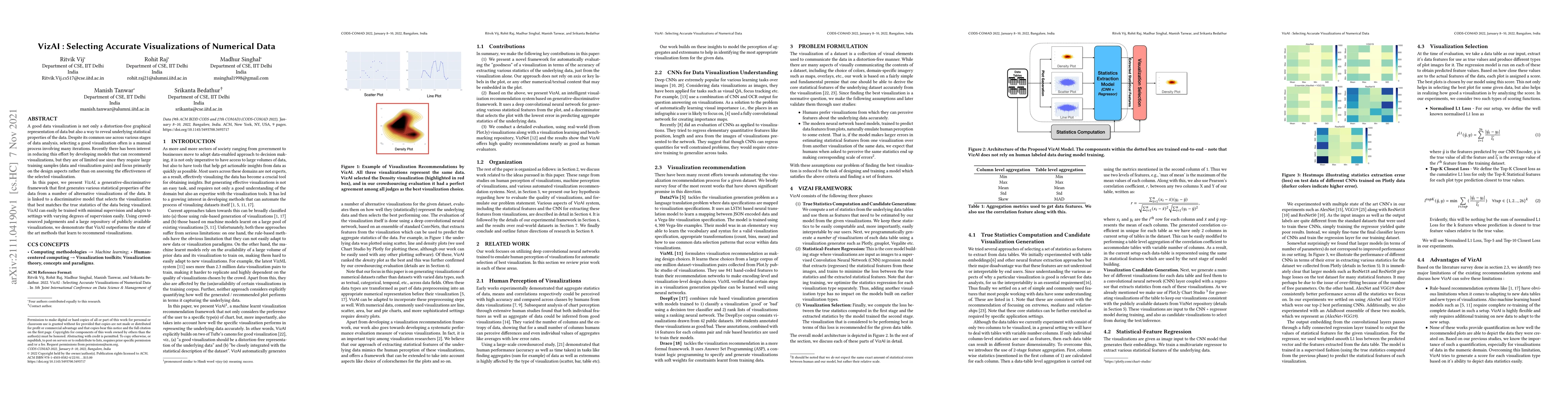 VizAI, a generative-discriminative framework, recommends accurate visualizations of numerical data by generating statistical properties and selecting the best match. It outperforms existing methods with minimal supervision and adapts to varying degrees of supervision.