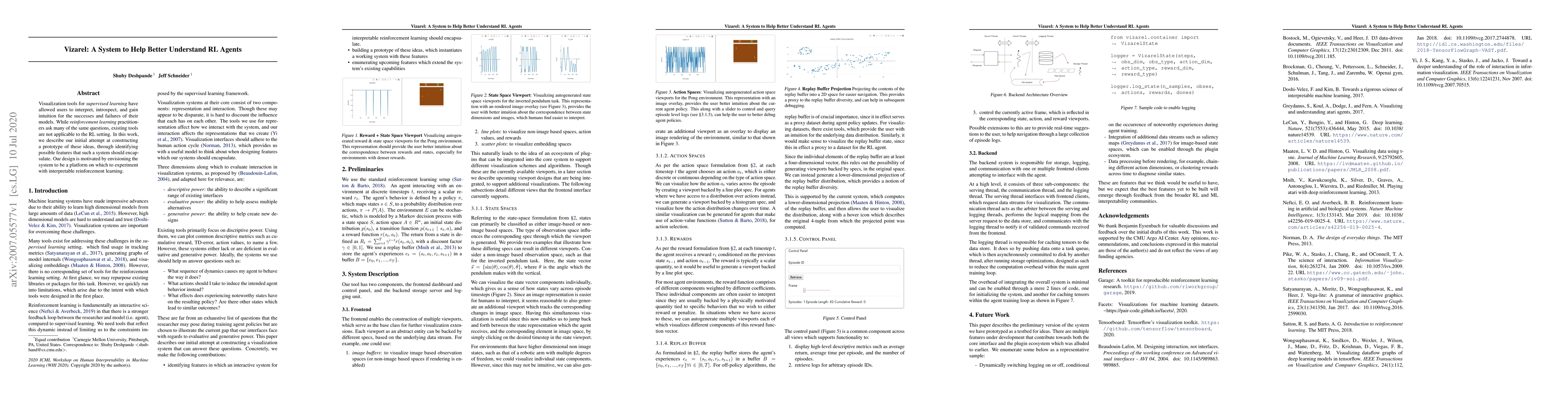 The paper introduces Vizarel, a prototype system designed to help understand reinforcement learning (RL) agents, addressing the lack of visualization tools tailored for RL. It aims to serve as a platform for interpretable RL experimentation by identifying potential features for such a system.