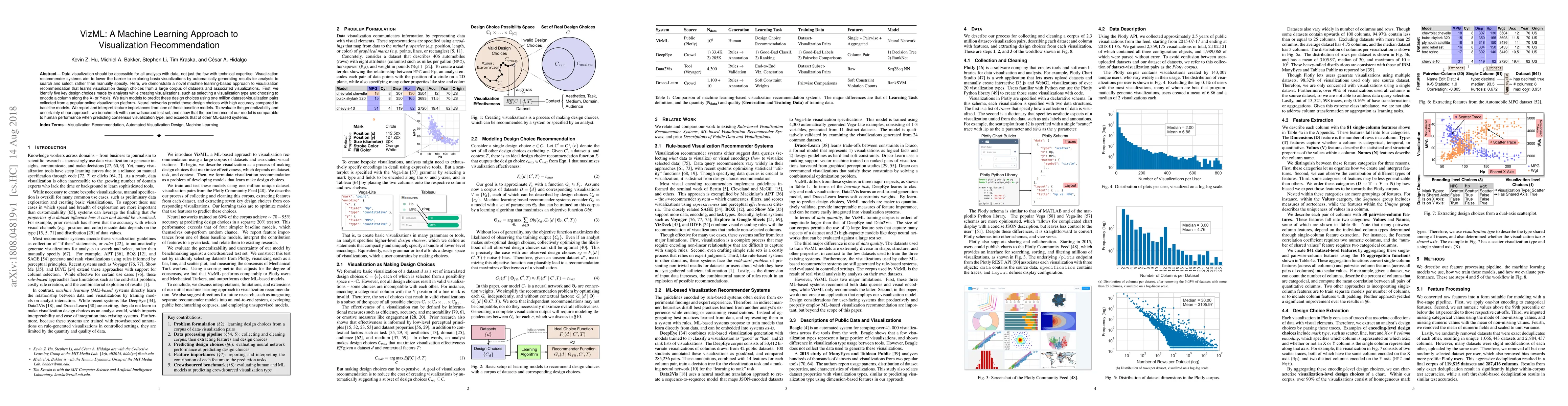 A machine learning approach is proposed to recommend data visualizations based on design choices made by analysts. The model accurately predicts these choices with high accuracy and outperforms other ML-based systems in a crowdsourced benchmark.