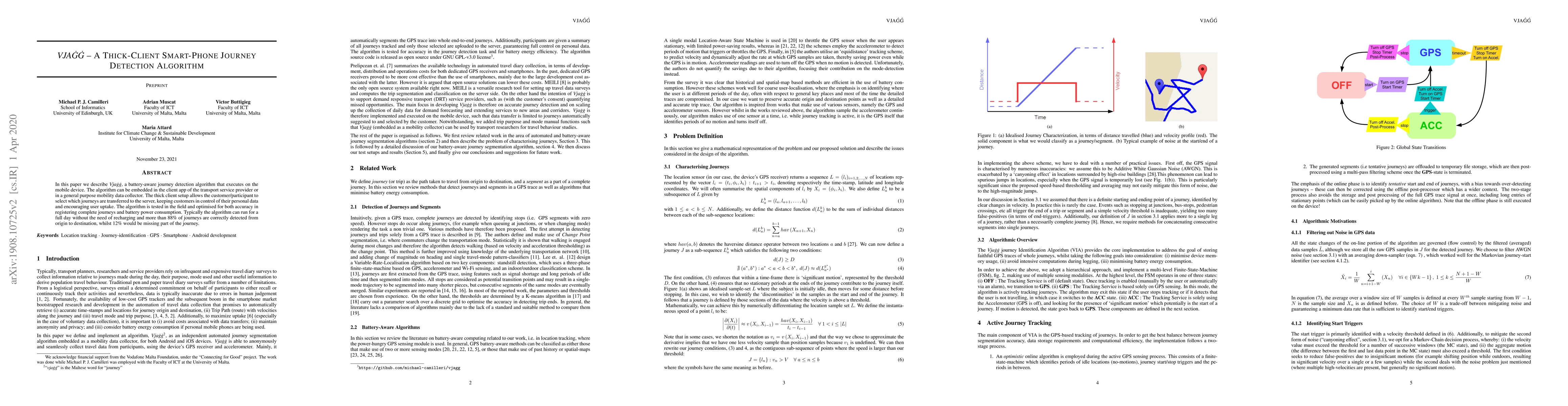 In this paper we describe $Vja\dot{g}\dot{g}$, a battery-aware journey detection algorithm that executes on the mobile device. The algorithm can be embedded in the client app of the transport service provider or in a general purpose mobility data collector. The thick client setup allows the customer/participant to select which journeys are transferred to the server, keeping customers in control of their personal data and encouraging user uptake. The algorithm is tested in the field and optimised for both accuracy in registering complete journeys and battery power consumption. Typically the algorithm can run for a full day without the need of recharging and more than 88% of journeys are correctly detected from origin to destination, whilst 12% would be missing part of the journey.