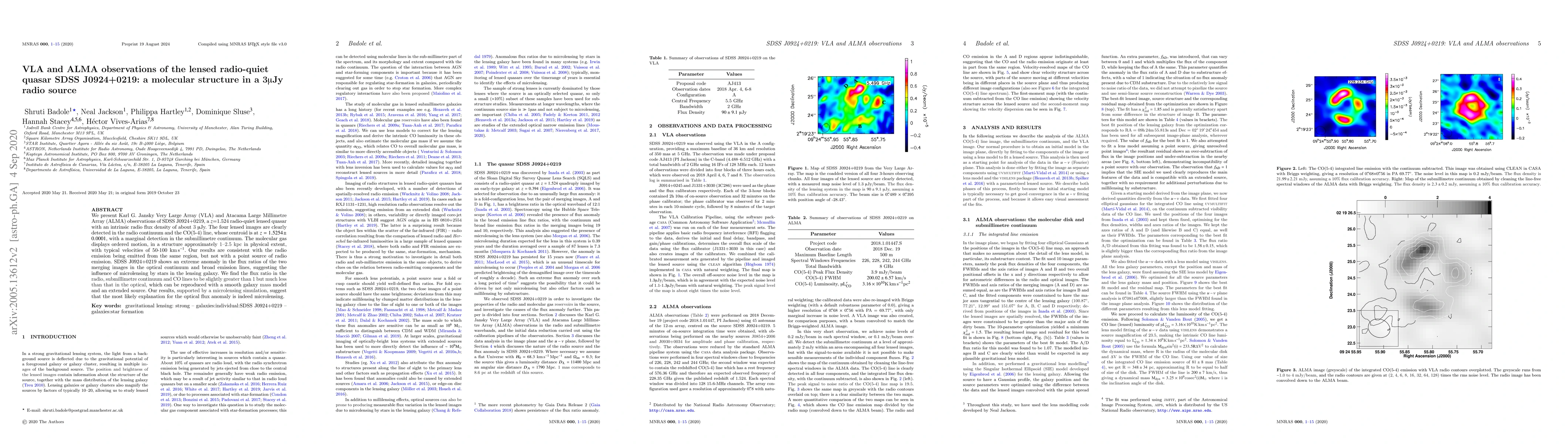 This paper reports on VLA and ALMA observations of the lensed radio-quiet quasar SDSS J0924+0219, revealing a molecular structure in its 3 microJy radio source. The study finds ordered molecular gas motion in a 1-2.5 kpc structure, with the radio emission likely originating from an extended source rather than a point source.