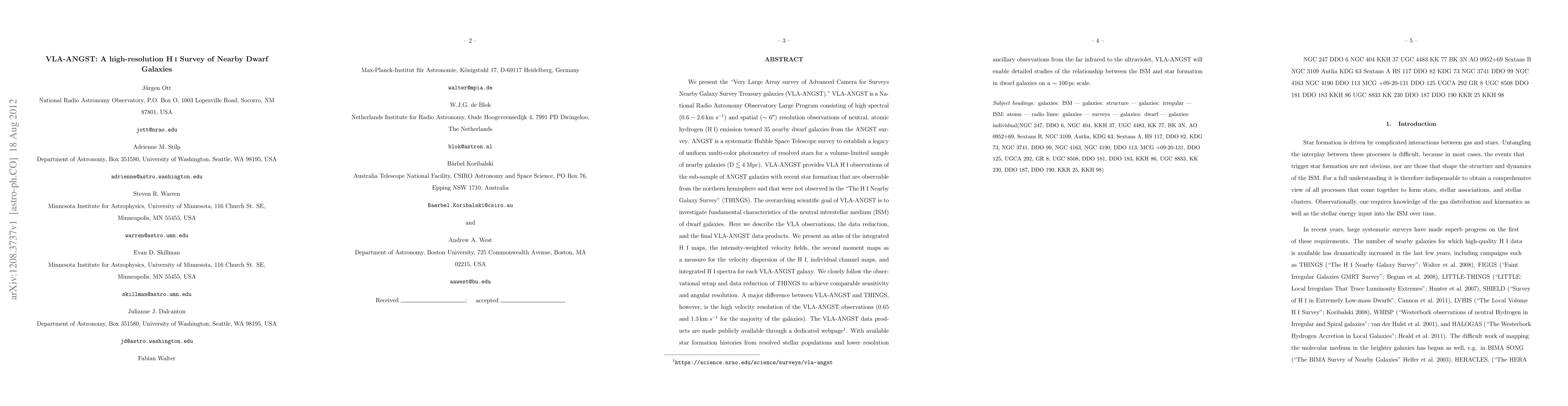 The VLA-ANGST survey provides high-resolution HI observations of 35 nearby dwarf galaxies, aiming to investigate the neutral interstellar medium's characteristics. The survey's data products include integrated HI maps, velocity fields, and spectra, and will facilitate studies on the ISM-star formation relationship in these galaxies.