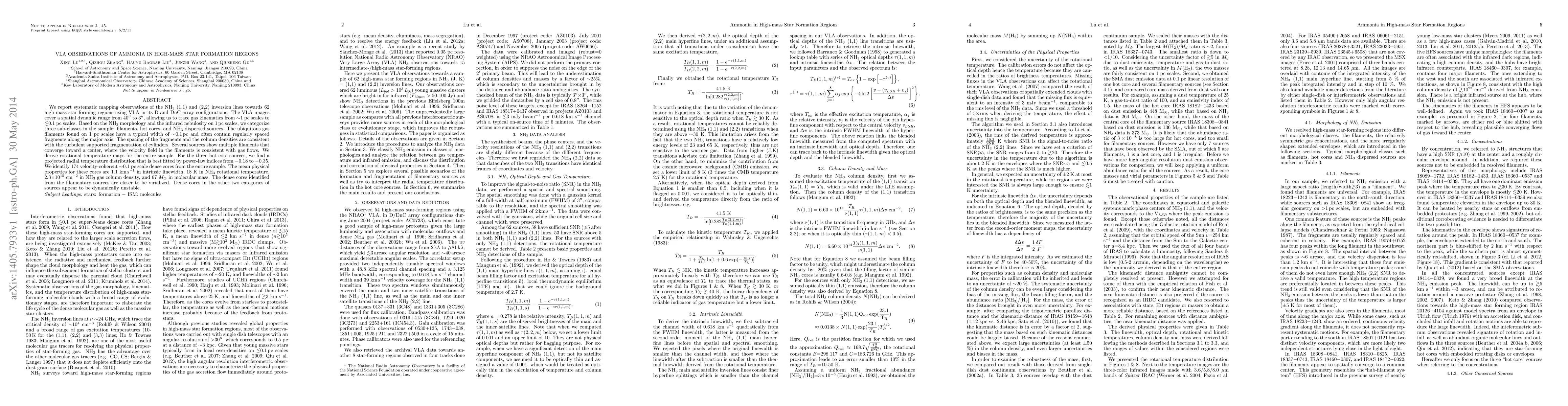 We report systematic mapping observations of the NH$_{3}$ (1,1) and (2,2) inversion lines towards 62 high-mass star-forming regions using VLA in its D and DnC array configurations. The VLA images cover a spatial dynamic range from 40$"$ to 3$"$, allowing us to trace gas kinematics from $\sim$1 pc scales to $\lesssim$0.1 pc scales. Based on the NH$_3$ morphology and the infrared nebulosity on 1\,pc scales, we categorize three sub-classes in the sample: filaments, hot cores, and NH$_3$ dispersed sources. The ubiquitous gas filaments found on 1 pc scales have a typical width of $\sim$0.1\,pc and often contain regularly spaced fragments along the major axis. The spacing of the fragments and the column densities are consistent with the turbulent supported fragmentation of cylinders. Several sources show multiple filaments that converge toward a center, where the velocity field in the filaments is consistent with gas flows. We derive rotational temperature maps for the entire sample. For the three hot core sources, we find a projected radial temperature distribution that is best fitted by power-law indices from $-$0.18 to $-$0.35. We identify 174 velocity-coherent $\sim$0.1 pc scale dense cores from the entire sample. The mean physical properties for these cores are 1.1 km\,s$^{-1}$ in intrinsic linewidth, 18 K in NH$_{3}$ rotational temperature, 2.3$\times$10$^{15}$ cm$^{-2}$ in NH$_3$ gas column density, and 67 $M_{\odot}$ in molecular mass. The dense cores identified from the filamentary sources are closer to be virialized. Dense cores in the other two categories of sources appear to be dynamically unstable.