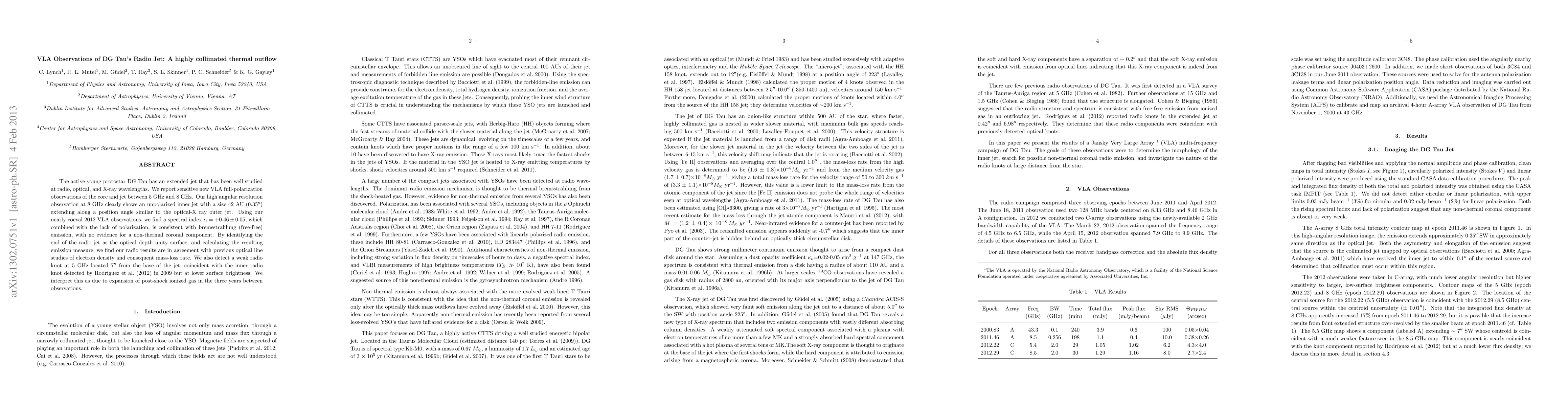 New radio observations of DG Tau's jet reveal a highly collimated thermal outflow with no evidence for non-thermal emission, consistent with bremsstrahlung emission and previous optical studies.