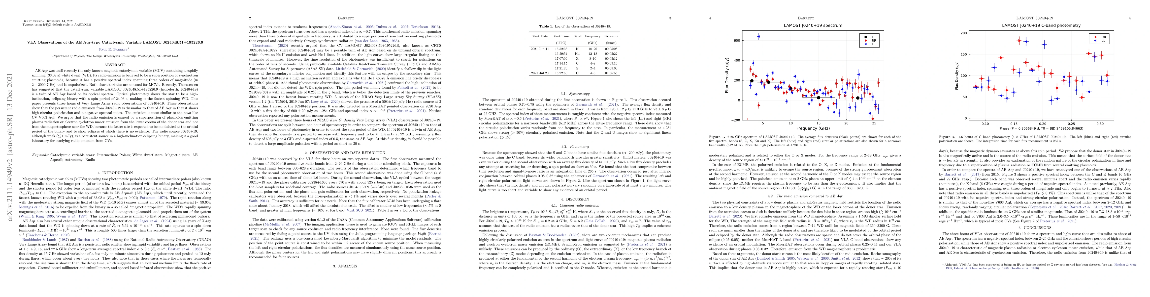 This paper reports VLA observations of the AE Aqr-type cataclysmic variable LAMOST J0240+19, revealing persistent radio emission with high circular polarization and a negative spectral index, unlike the unpolarized emission of AE Aqr. The radio emission is attributed to plasma radiation or electron cyclotron maser emission from the lower corona of the donor star.