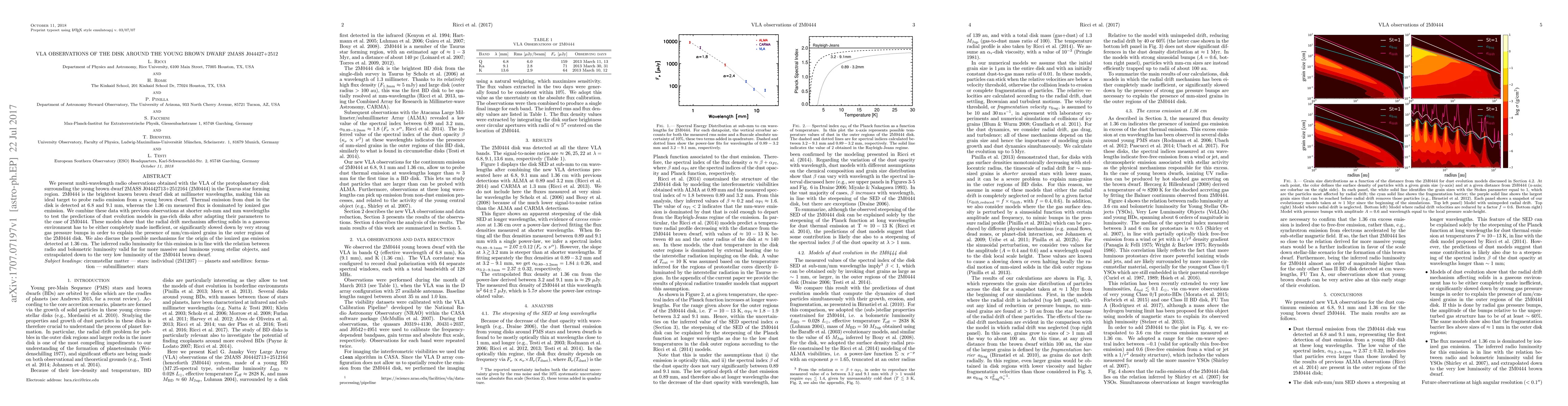 This paper reports VLA observations of the protoplanetary disk around the young brown dwarf 2M0444 in Taurus, revealing thermal dust emission and ionized gas emission. The study suggests that radial drift of solids must be significantly slowed to explain the presence of mm/cm-sized grains, and discusses mechanisms for the detected ionized gas emission.