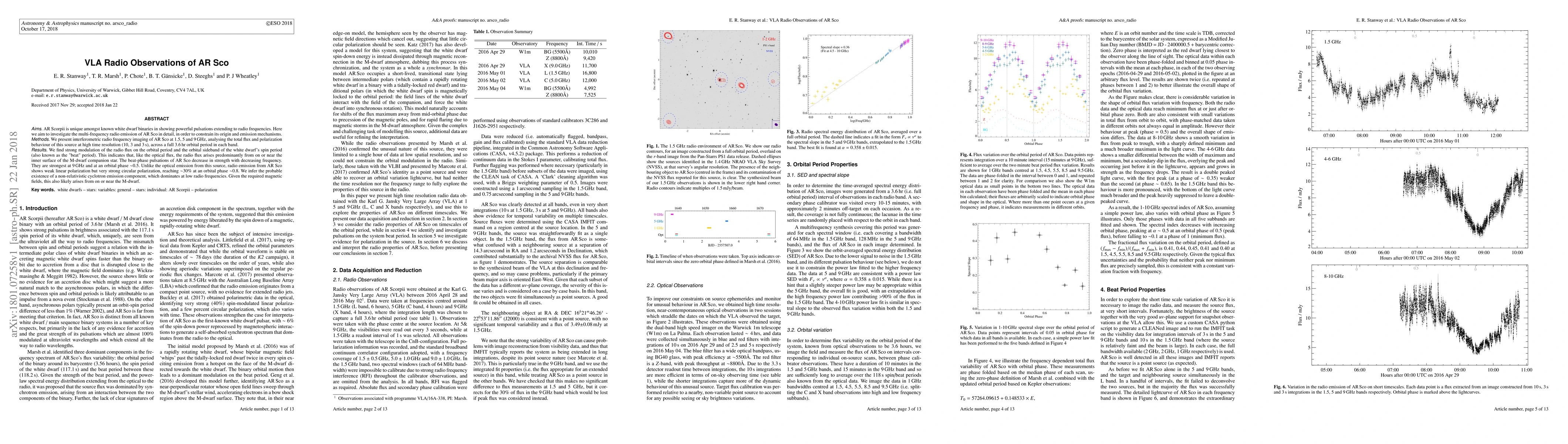 This paper investigates the multi-frequency radio emissions of AR Scorpii, revealing strong modulation on the orbital period and beat period, indicating radio flux originates from the M-dwarf companion. The radio emission shows strong circular polarization, suggesting a non-relativistic cyclotron emission component likely from the M-dwarf's magnetic field.