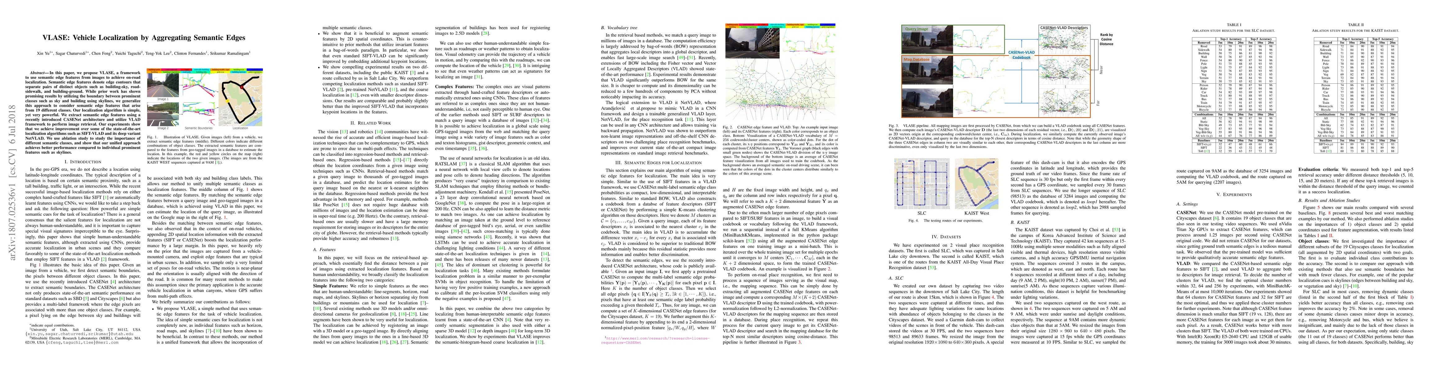 VLASE framework uses semantic edge features to achieve on-road localization with improved performance over state-of-the-art algorithms. It aggregates features from 19 different classes using a unified approach that surpasses individual prominent features.