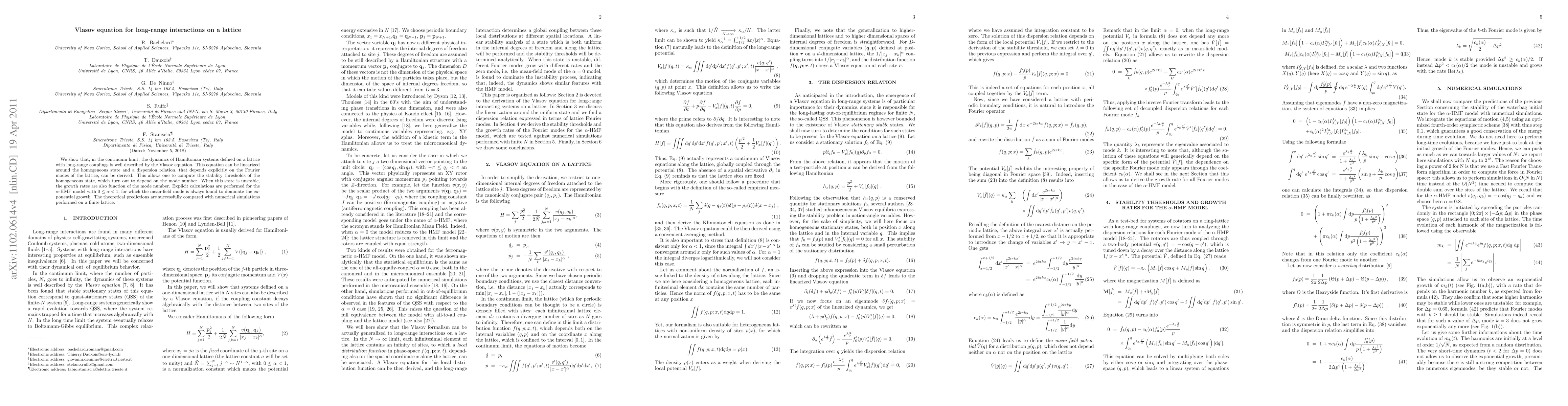 We show that, in the continuum limit, the dynamics of Hamiltonian systems defined on a lattice with long-range couplings is well described by the Vlasov equation. This equation can be linearized around the homogeneous state and a dispersion relation, that depends explicitly on the Fourier modes of the lattice, can be derived. This allows one to compute the stability thresholds of the homogeneous state, which turn out to depend on the mode number. When this state is unstable, the growth rates are also function of the mode number. Explicit calculations are performed for the $\alpha$-HMF model with $0 \leq \alpha <1$, for which the zero mean-field mode is always found to dominate the exponential growth. The theoretical predictions are successfully compared with numerical simulations performed on a finite lattice.