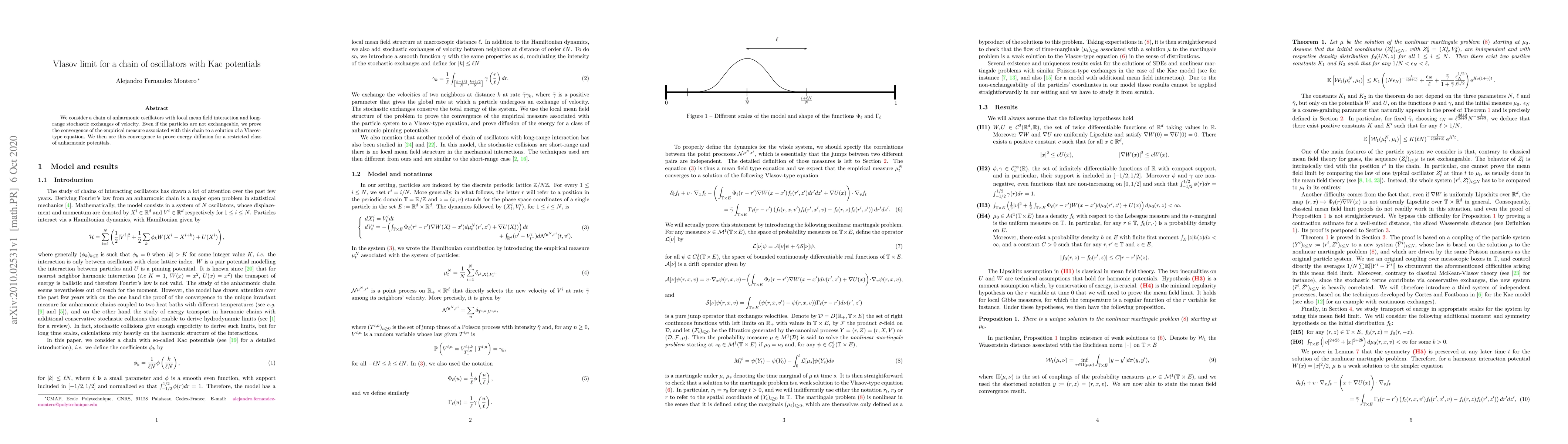 We consider a chain of anharmonic oscillators with local mean field interaction and long-range stochastic exchanges of velocity. Even if the particles are not exchangeable, we prove the convergence of the empirical measure associated with this chain to a solution of a Vlasov-type equation. We then use this convergence to prove energy diffusion for a restricted class of anharmonic potentials.