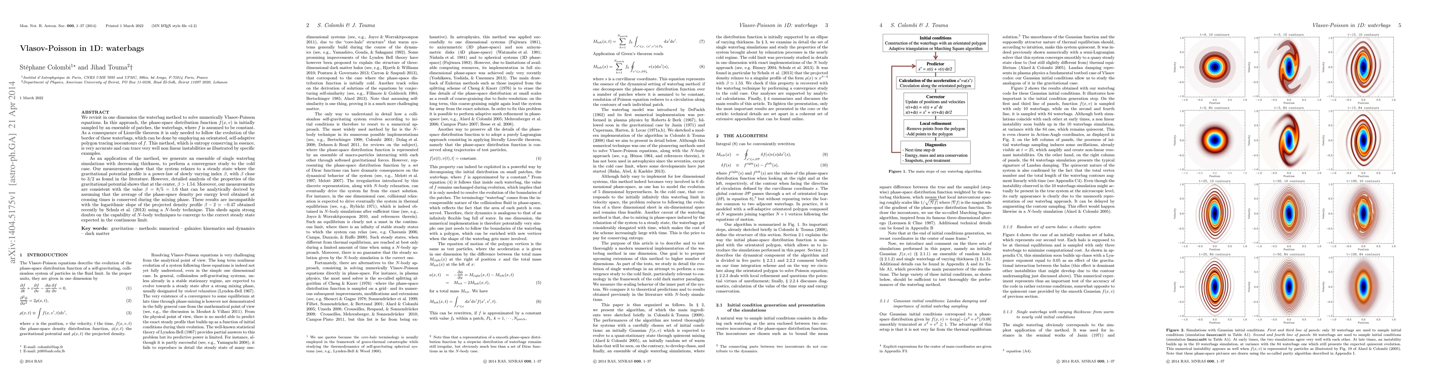 We revisit in one dimension the waterbag method to solve numerically Vlasov-Poisson equations. In this approach, the phase-space distribution function $f(x,v)$ is initially sampled by an ensemble of patches, the waterbags, where $f$ is assumed to be constant. As a consequence of Liouville theorem it is only needed to follow the evolution of the border of these waterbags, which can be done by employing an orientated, self-adaptive polygon tracing isocontours of $f$. This method, which is entropy conserving in essence, is very accurate and can trace very well non linear instabilities as illustrated by specific examples. As an application of the method, we generate an ensemble of single waterbag simulations with decreasing thickness, to perform a convergence study to the cold case. Our measurements show that the system relaxes to a steady state where the gravitational potential profile is a power-law of slowly varying index $\beta$, with $\beta$ close to $3/2$ as found in the literature. However, detailed analysis of the properties of the gravitational potential shows that at the center, $\beta > 1.54$. Moreover, our measurements are consistent with the value $\beta=8/5=1.6$ that can be analytically derived by assuming that the average of the phase-space density per energy level obtained at crossing times is conserved during the mixing phase. These results are incompatible with the logarithmic slope of the projected density profile $\beta-2 \simeq -0.47$ obtained recently by Schulz et al. (2013) using a $N$-body technique. This sheds again strong doubts on the capability of $N$-body techniques to converge to the correct steady state expected in the continuous limit.