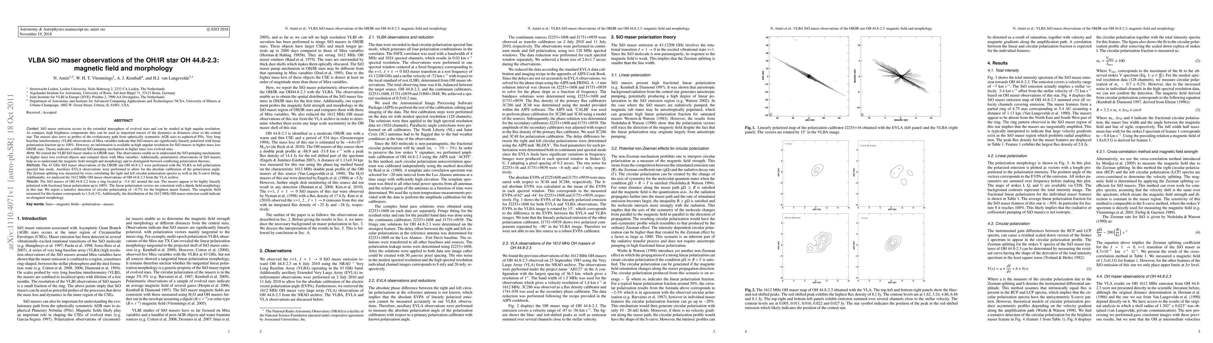 This paper reports VLBA SiO maser observations of the OH/IR star OH 44.8-2.3, revealing highly linearly polarized SiO masers forming a ring around the star and suggesting a dipole magnetic field morphology. The study also detected a small amount of circular polarization and measured a magnetic field strength of 1.5±0.3 G.