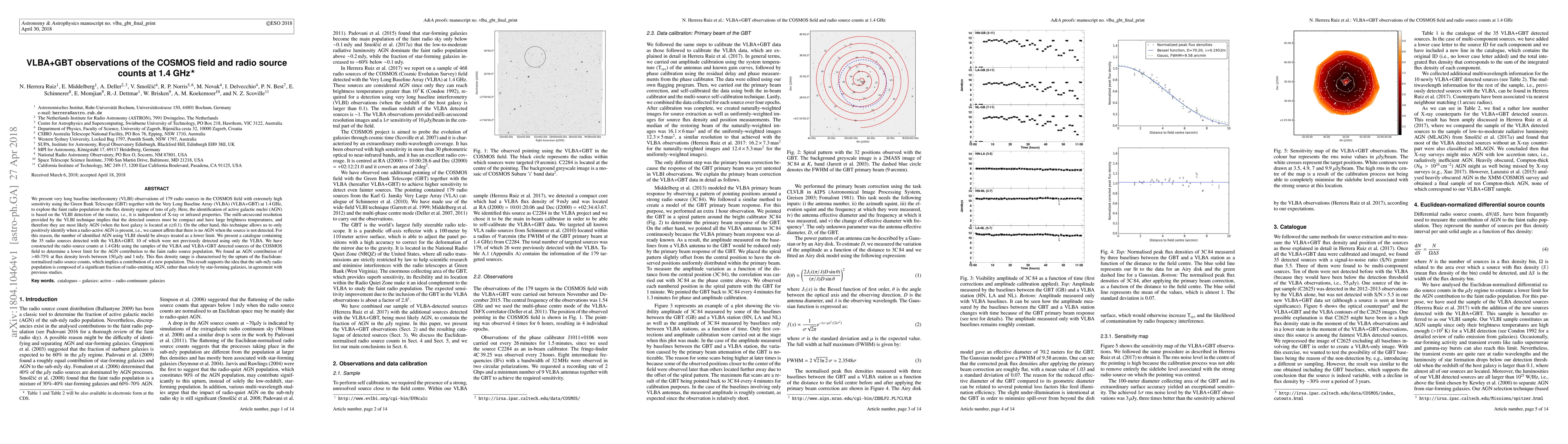 The research utilized VLBA+GBT observations at 1.4 GHz for 179 radio sources in the COSMOS field, achieving high sensitivity to explore the faint radio population in the flux density regime of tens of $\mu$Jy, identifying active galactic nuclei (AGN) based on VLBI detection.