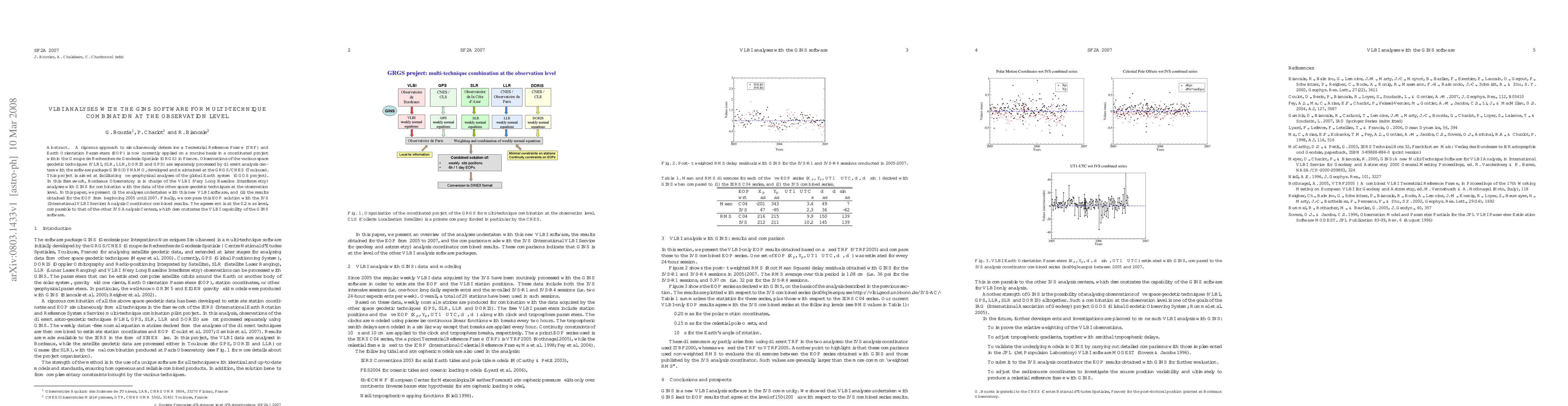This paper presents VLBI analyses using the GINS software for combining various space geodetic techniques, achieving Earth Orientation Parameters (EOP) with agreement at the 0.2 mas level, comparable to the IVS Analysis Coordinator results, demonstrating the GINS software's effectiveness.