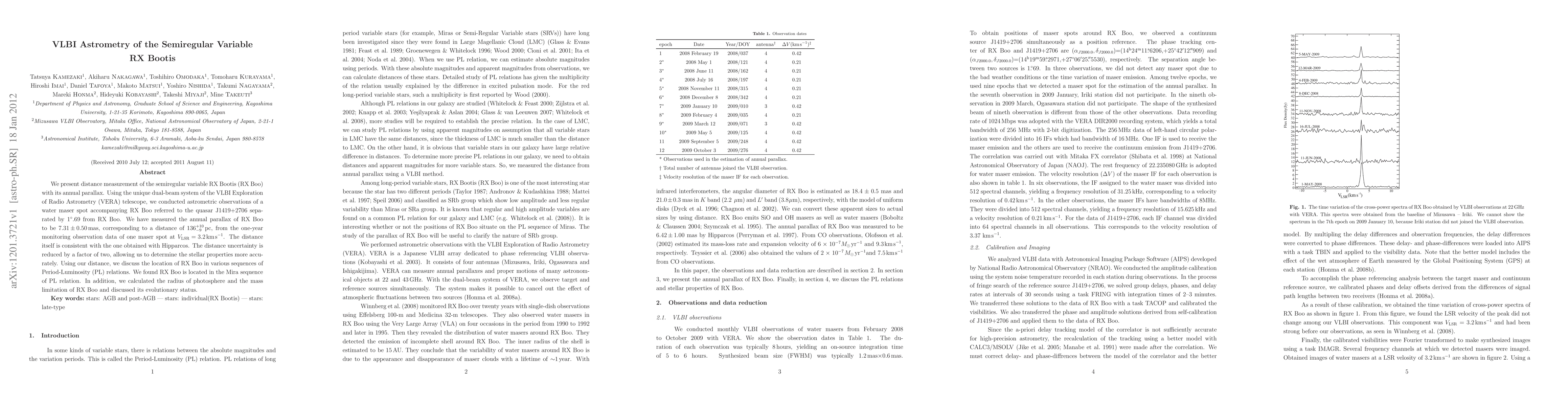 This paper reports a precise distance measurement for the semiregular variable RX Bootis using VLBI astrometry, yielding an annual parallax of 7.31 ± 0.50 mas, corresponding to a distance of 136 ± 9 pc. This refined distance aids in accurately determining RX Boo's stellar properties and places it in the Mira sequence of Period-Luminosity relations.