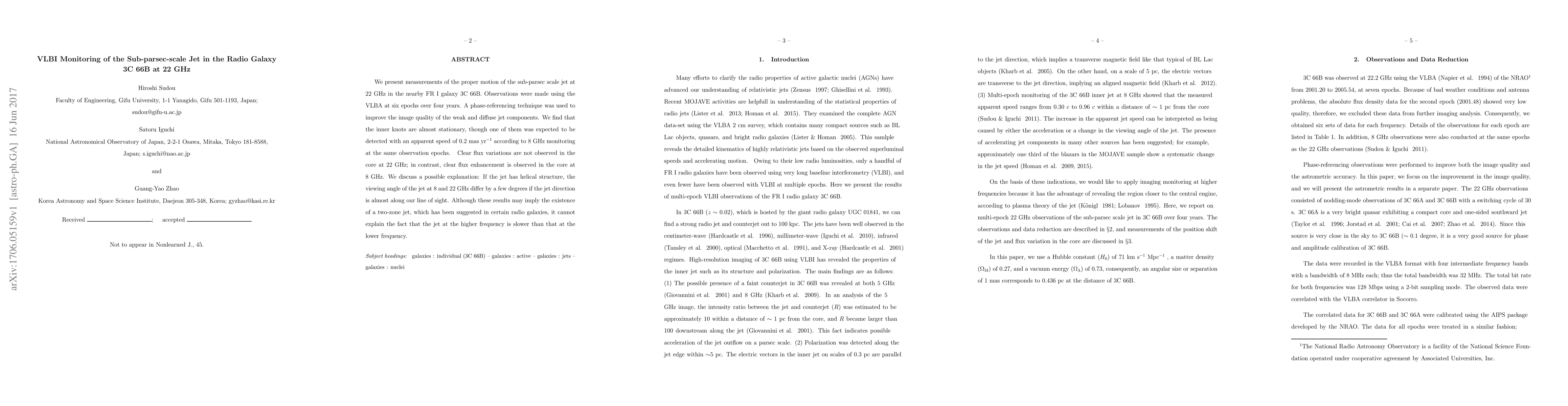 Researchers used VLBI to monitor a sub-parsec-scale jet in galaxy 3C 66B at 22 GHz, finding that the inner knots are almost stationary despite expected motion, with clearer flux variations observed at lower frequency.