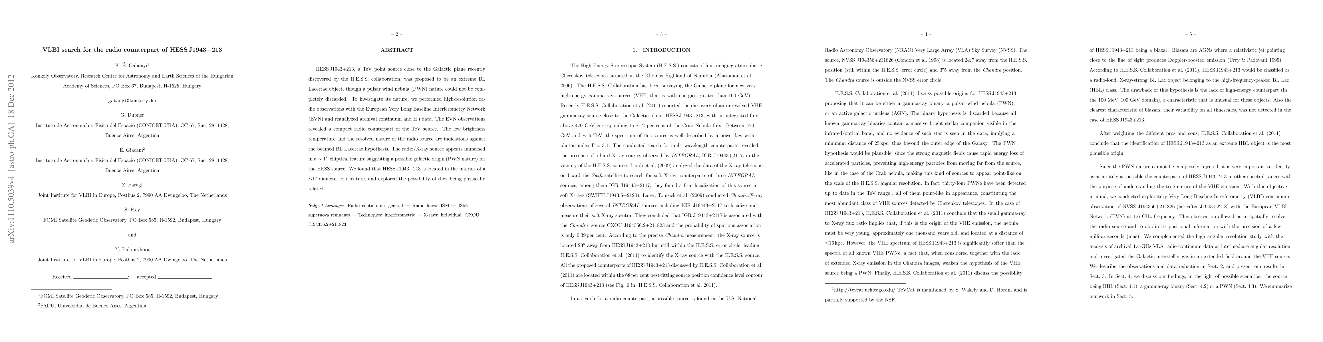 HESS J1943+213, a TeV point source close to the Galactic plane recently discovered by the H.E.S.S. collaboration, was proposed to be an extreme BL Lacertae object, though a pulsar wind nebula (PWN) nature could not be completely discarded. To investigate its nature, we performed high-resolution radio observations with the European Very Long Baseline Interferometry Network (EVN) and reanalyzed archival continuum and H {\sc i} data. The EVN observations revealed a compact radio counterpart of the TeV source. The low brightness temperature and the resolved nature of the radio source are indications against the beamed BL Lacertae hypothesis. The radio/X-ray source appears immersed in a $\sim$ 1\arcmin elliptical feature suggesting a possible galactic origin (PWN nature) for the HESS source. We found that HESS\,J1943+213 is located in the interior of a $\sim1\degr$ diameter H {\sc i} feature, and explored the possibility of they being physically related.