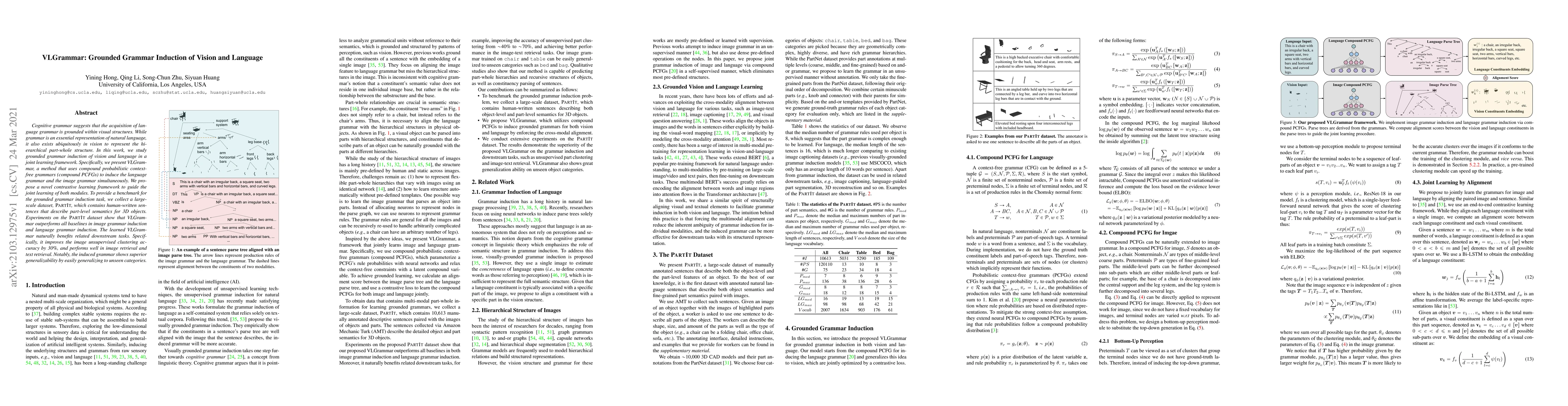 VLGrammar presents a method for jointly inducing language and image grammars grounded in visual structures, achieving superior performance over baselines on a new dataset \textsc{PartIt} and showing benefits for downstream tasks like image clustering and retrieval.