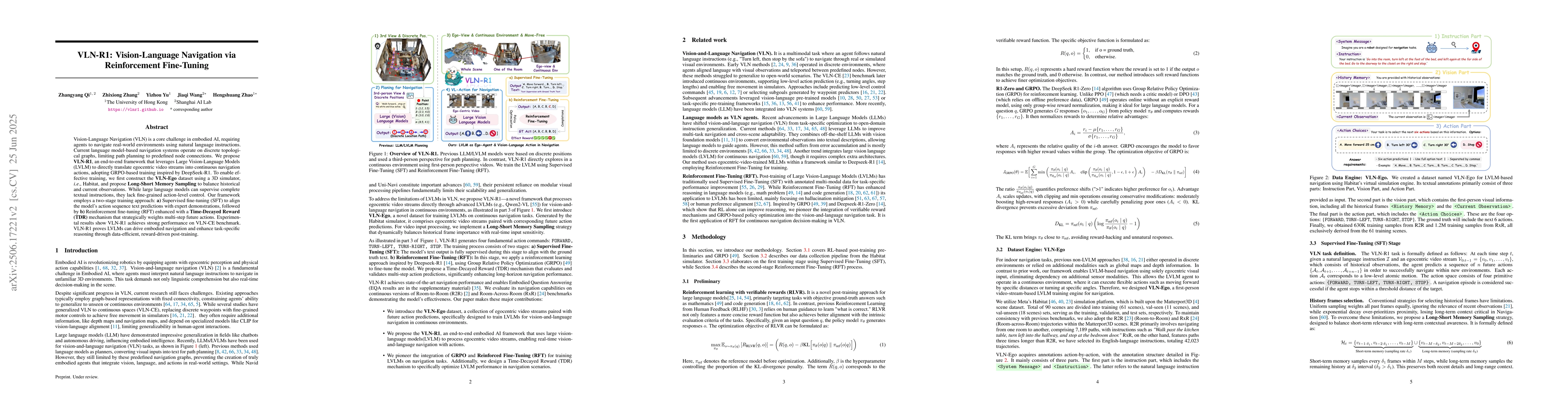 The research introduces VLN-R1, a framework using Large Vision-Language Models (LVLM) to navigate environments in real-world settings via egocentric video streams. It outlines a two-stage training process involving Supervised Fine-Tuning and Reinforcement Fine-Tuning, achieving strong performance on VLN-CE benchmark, demonstrating the capability of LVLMs in task-specific reasoning for embodied navigation.