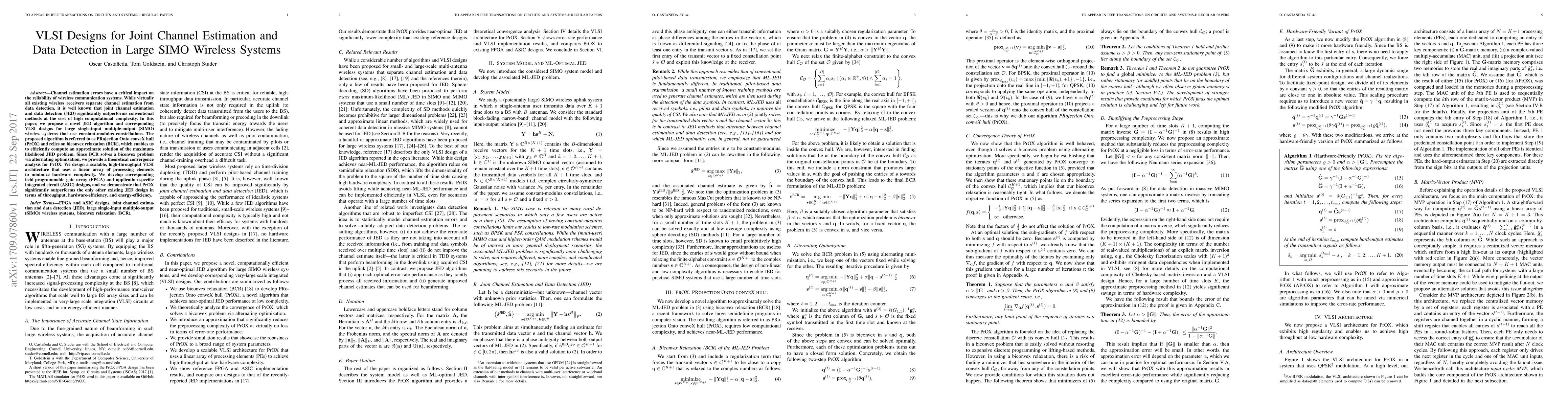 This paper proposes a novel VLSI design for joint channel estimation and data detection (JED) in large SIMO wireless systems using constant-modulus constellations. The proposed PrOX algorithm, based on biconvex relaxation, efficiently computes an approximate solution to the maximum-likelihood JED problem, and the accompanying VLSI architecture significantly outperforms existing methods in terms of throughput, hardware-efficiency, and energy-efficiency.