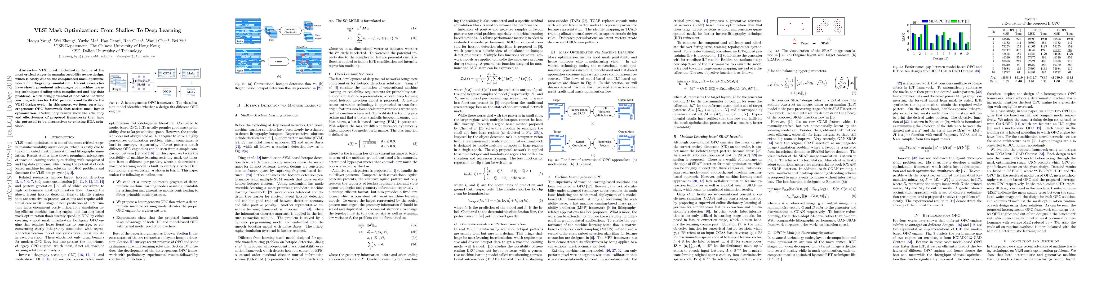 VLSI mask optimization is one of the most critical stages in manufacturability aware design, which is costly due to the complicated mask optimization and lithography simulation. Recent researches have shown prominent advantages of machine learning techniques dealing with complicated and big data problems, which bring potential of dedicated machine learning solution for DFM problems and facilitate the VLSI design cycle. In this paper, we focus on a heterogeneous OPC framework that assists mask layout optimization. Preliminary results show the efficiency and effectiveness of proposed frameworks that have the potential to be alternatives to existing EDA solutions.