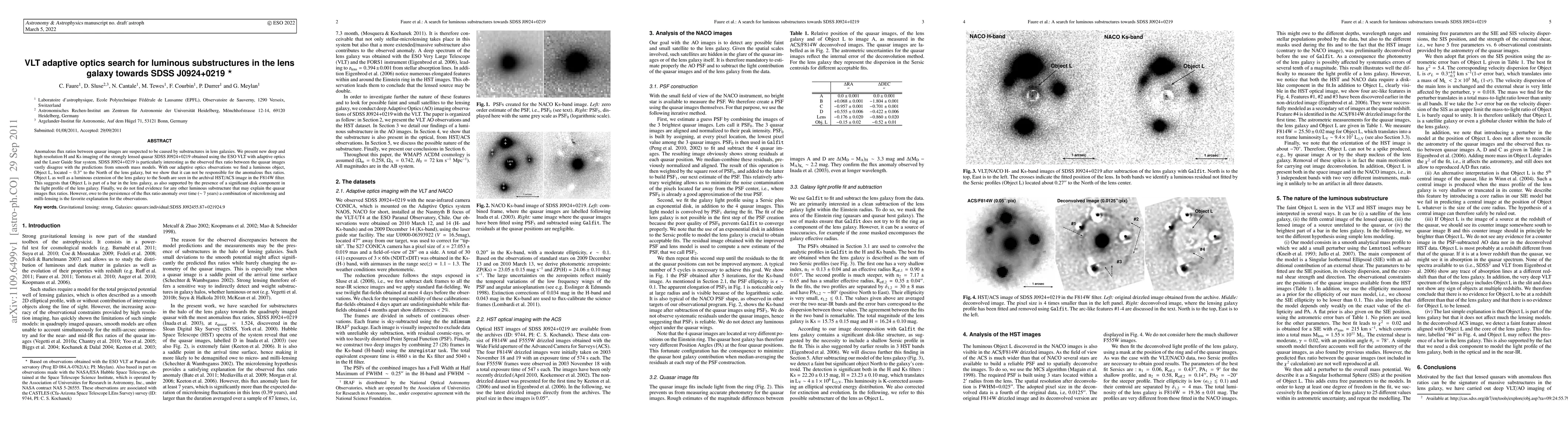 This study uses VLT adaptive optics to search for luminous substructures in the lens galaxy of SDSS J0924+0219, revealing a luminous object, Object L, which is part of a bar but does not explain the anomalous flux ratios. The anomaly is likely due to microlensing and milli-lensing over time.