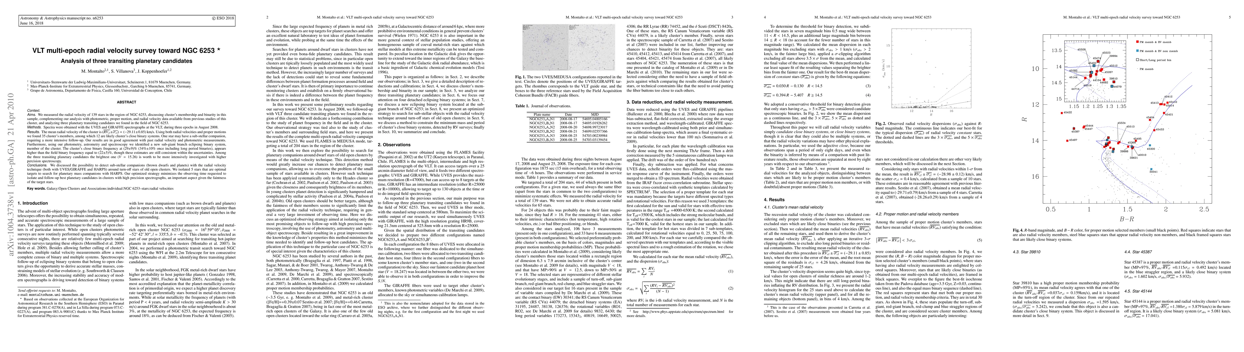 We measured the radial velocity of 139 stars in the region of NGC 6253, discussing cluster's membership and binarity in this sample, complementing our analysis with photometric, proper motion, and radial velocity data available from previous studies of this cluster, and analyzing three planetary transiting candidates we found in the field of NGC 6253. Spectra were obtained with the UVES and GIRAFFE spectrographs at the VLT, during three epochs in August 2008. The mean radial velocity of the cluster is -29.11+/-0.85 km/s. Using both radial velocities and proper motions we found 35 cluster's members, among which 12 are likely cluster's close binary systems. One star may have a sub-stellar companion, requiring a more intensive follow-up. Our results are in good agreement with past radial velocity and photometric measurements. Furthermore, using our photometry, astrometry and spectroscopy we identified a new sub-giant branch eclipsing binary system, member of the cluster. The cluster's close binary frequency at 29% +/- 9% (34% +/-10% once including long period binaries), appears higher than the field binary frequency equal to (22% +/- 5%, though these estimates are still consistent within the uncertainties. Among the three transiting planetary candidates the brightest one (V=15.26) is worth to be more intensively investigated with higher percision spectroscopy. We discussed the possibility to detect sub-stellar companions (brown dwarfs and planets) with the radial velocity technique (both with UVES/GIRAFFE and HARPS) around turn-off stars of old open clusters [abridged].