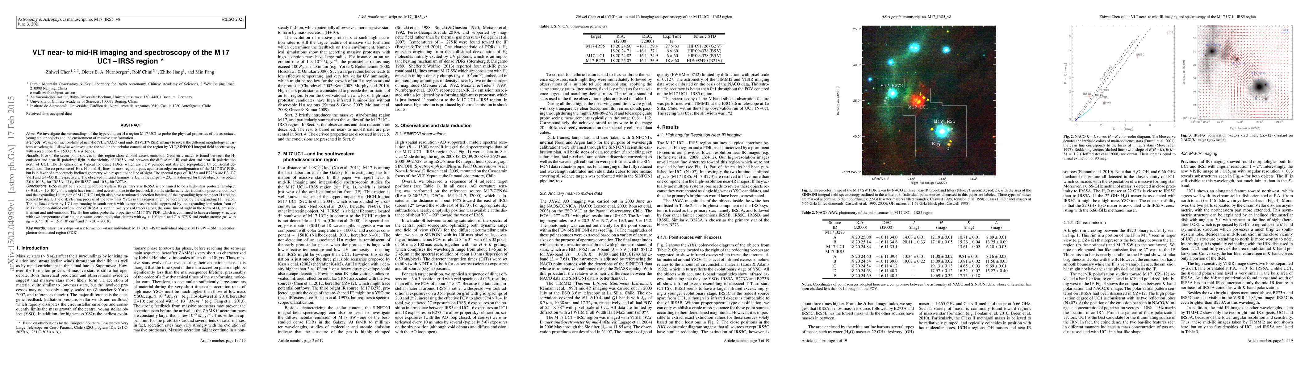 This paper uses VLT near- to mid-IR imaging and spectroscopy to study the M17 UC1-IRS5 region, revealing the physical properties of young stellar objects and the environment of massive star formation. IRS5A is identified as a high-mass protostellar object, possibly in a quadruple system, with accretion possibly terminated by stellar feedback and expanding HII regions.